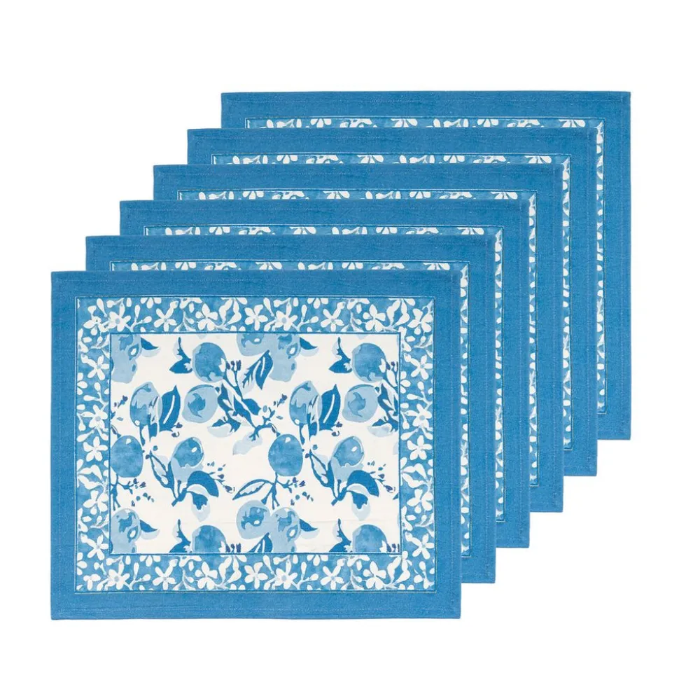 Idyllic landscapes, sumptuous colors, and the vibrant beauty of Southern France describes Couleur Nature. This brand of hand-painted table linens aims to bring a Provençal sense of effortlessness, rich culture, and joie de vivre to your life and home—no matter where you live. Infuse your dining room or kitchen with the vibrant charm of French elegance with the Citron Mats in Bleu, Set of 6. Handcrafted from a luxurious blend of linen and cotton, these placemats feature a delightful citrus design that evokes the fresh, zesty feel of citrus orchards and blooming lemon blossoms. Available in three beautiful colors, they bring a lively pop of color and style to your table.
