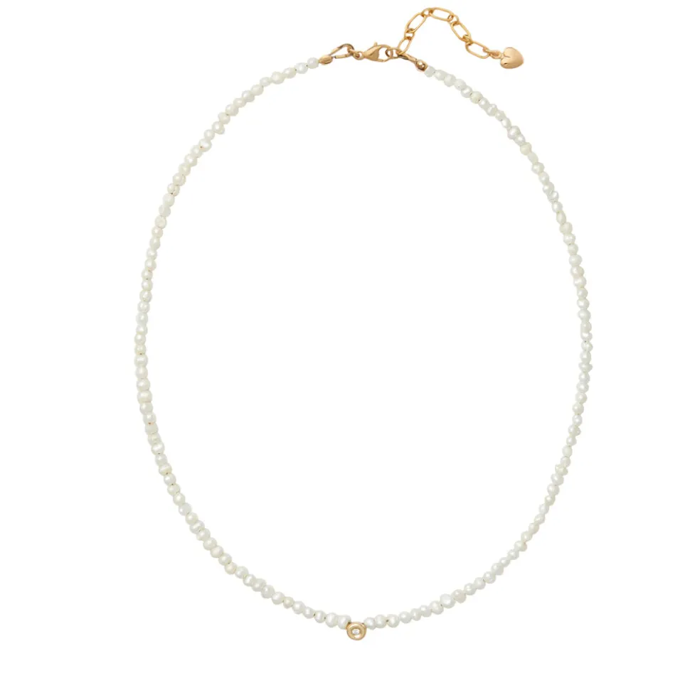 The mother-daughter duo behind Brinker + Eliza combine their experience in metalsmithing and fashion to create incredibly unique jewelry that feels custom-made. Employing pearls, shells, and earth’s most prized organic forms, these are pieces to be not just worn but treasured. The Claire Necklace is a dream. Made from a strand of mini freshwater pearls, faceted semi-precious gemstone sapphire or dolomite coral beads featuring a faceted White Topaz set in a 24K antique gold-plated bezel.