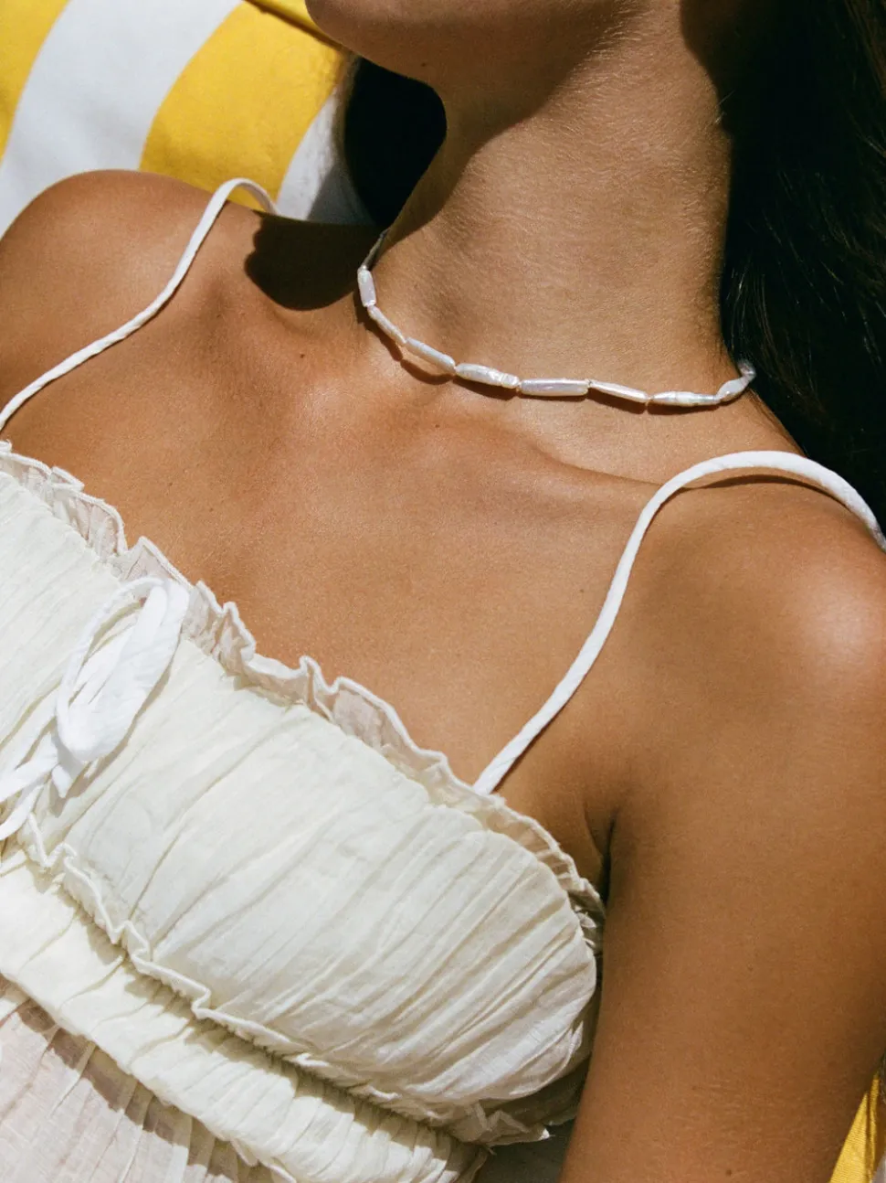 Created by Alice Marcuz was born out of a deep-rooted love for fashion and fine jewelry. After years immersed in the world of style and design in New York City, Alice earned her GIA certification in gemstones, refining her craft and creative vision. Now based in Charleston, South Carolina, she draws inspiration from blending color and texture—infusing every design with an effortless sense of joy. Created by Alice Marcuz is dedicated to bringing playful, stylish, and timeless jewelry to everyday looks. The Claire Pearl Necklace is a feminine take on classic pearls, strung with semi-precious freshwater pearls for a soft, radiant finish.