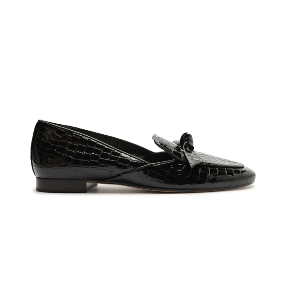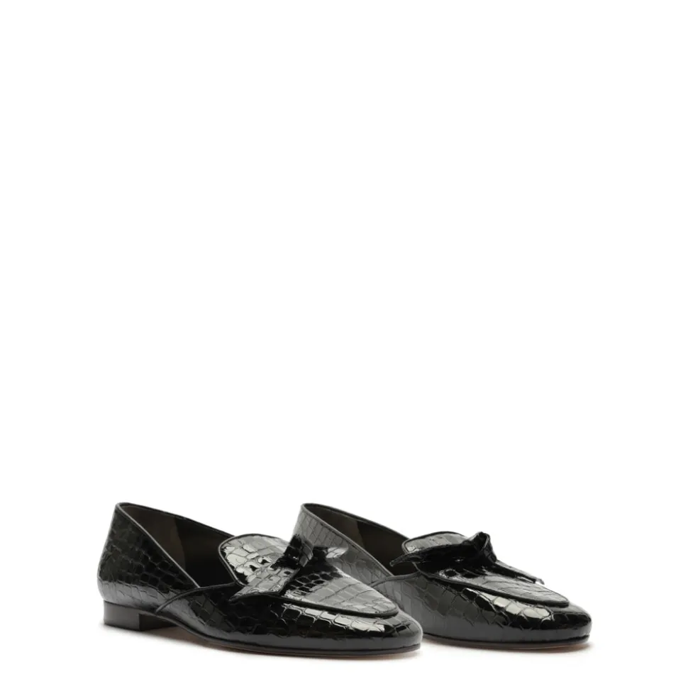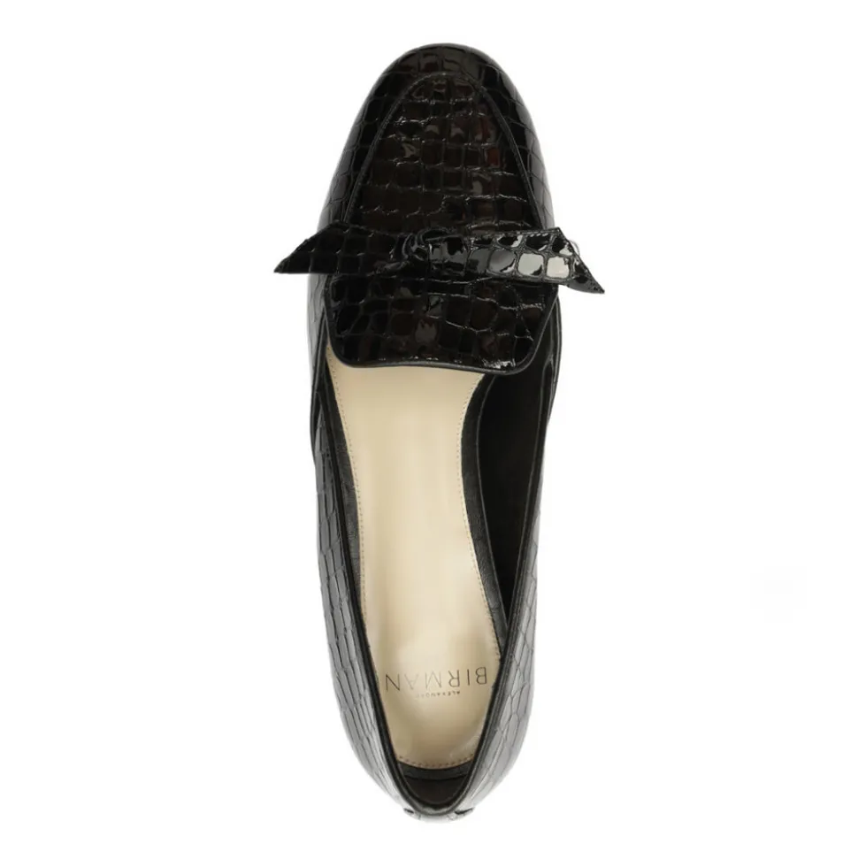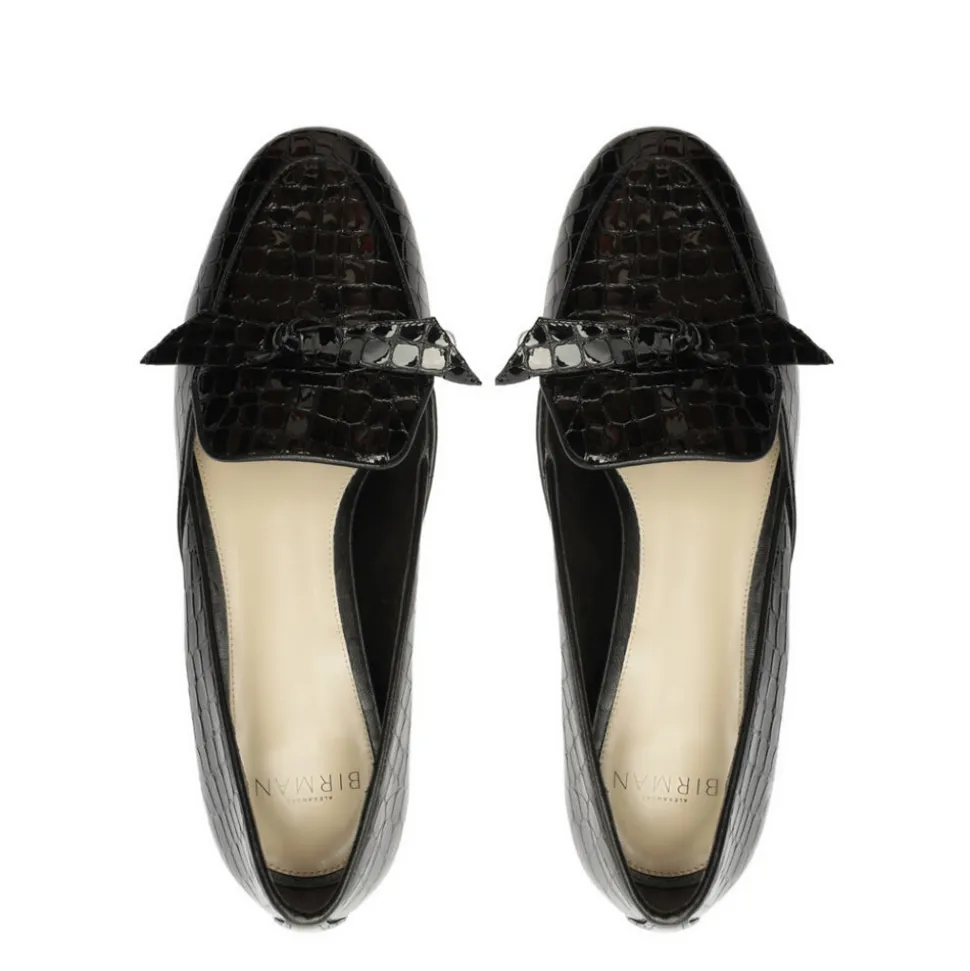 Founded in 2008, Alexandre Birman infuses each of his fine footwear collections with the spirit, sensuality and sophistication of his Brazilian heritage. Beginning with thoughtful drawings, exceptional craftsmanship is the brand’s cornerstone, employing fine artisans, superior materials, and thoughtful design to create timeless, luxurious shoes, style after style. The Clarita Belgian Crocco Loafer in Black features the brand’s signature slim bow and a rich patent black crocco that will add a bit of polish to your daily style.