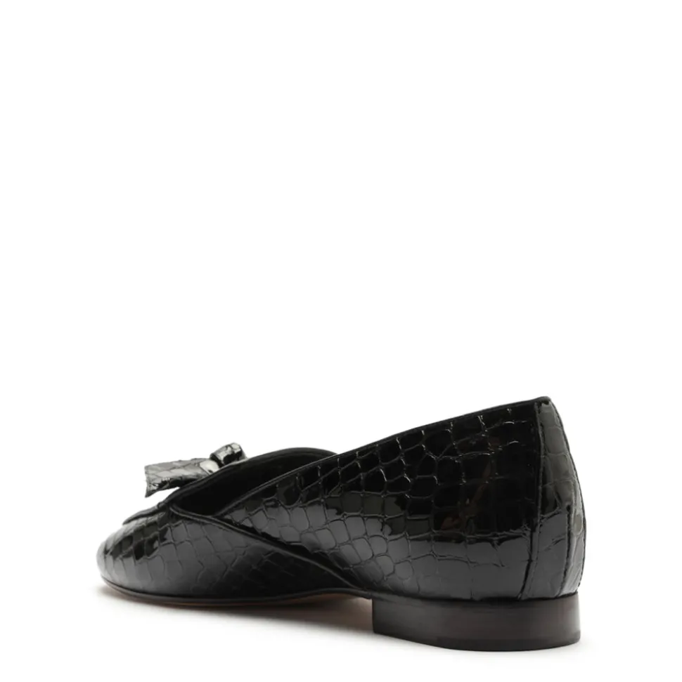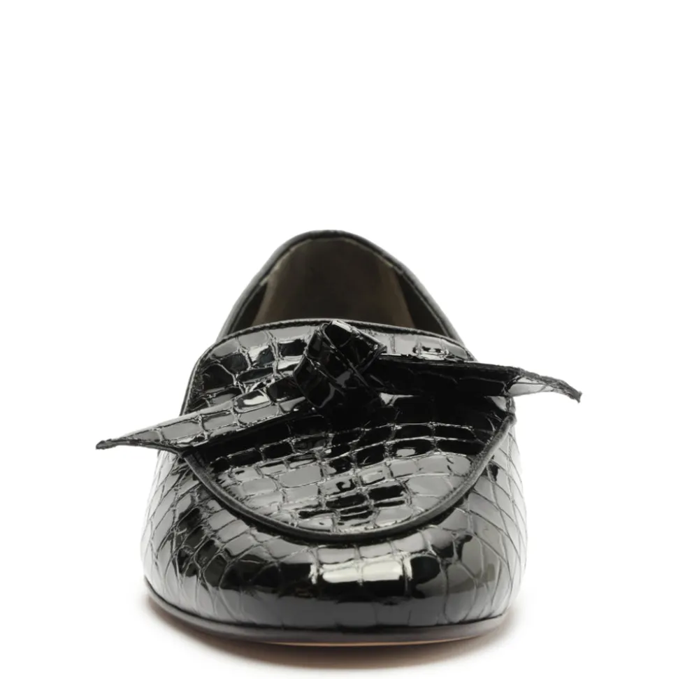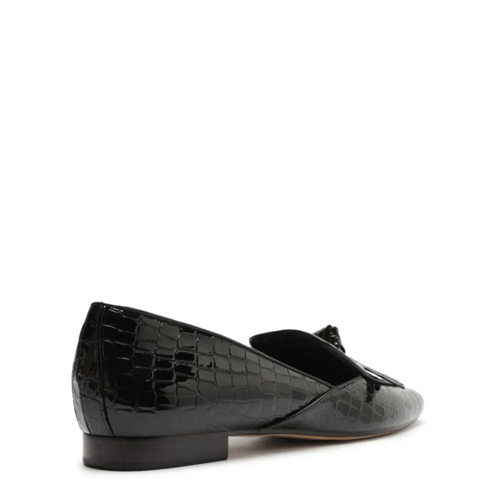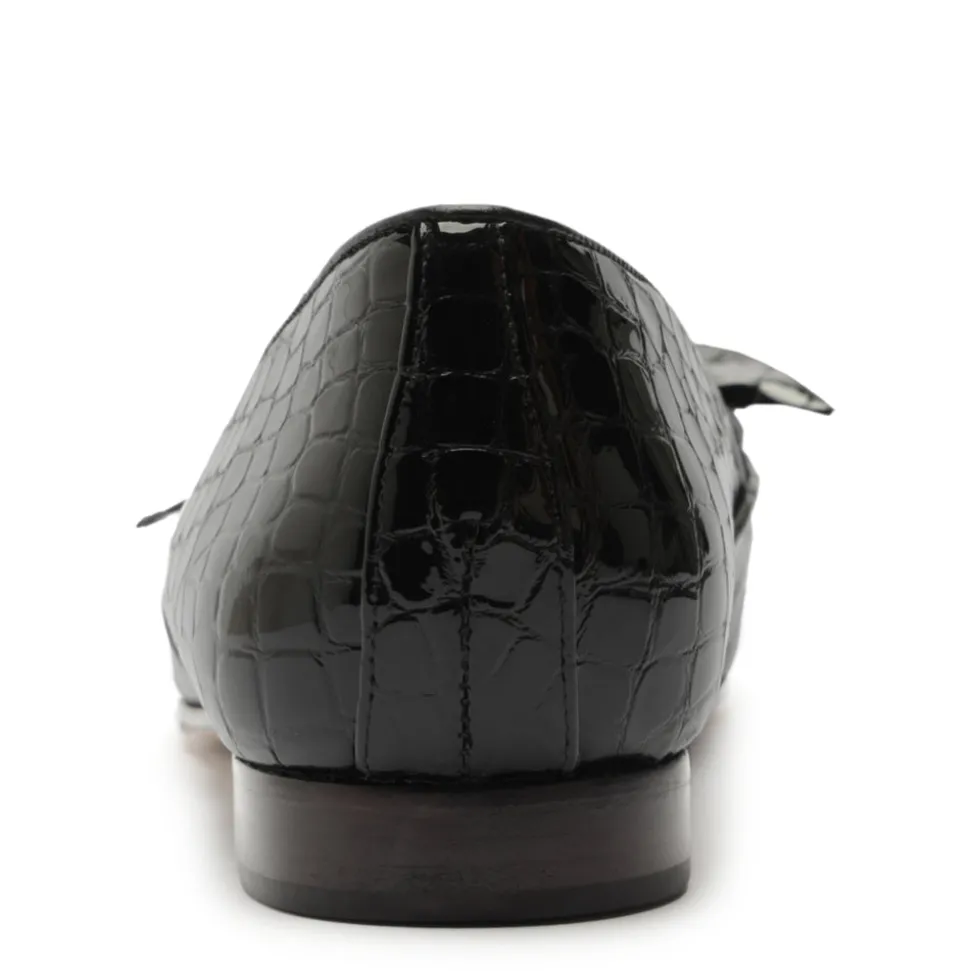 Founded in 2008, Alexandre Birman infuses each of his fine footwear collections with the spirit, sensuality and sophistication of his Brazilian heritage. Beginning with thoughtful drawings, exceptional craftsmanship is the brand’s cornerstone, employing fine artisans, superior materials, and thoughtful design to create timeless, luxurious shoes, style after style. The Clarita Belgian Crocco Loafer in Black features the brand’s signature slim bow and a rich patent black crocco that will add a bit of polish to your daily style.