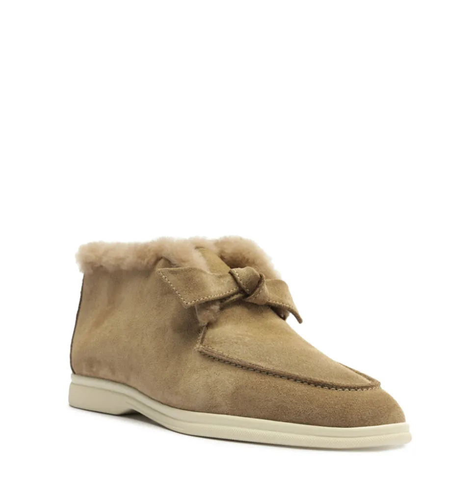 Founded in 2008, Alexandre Birman infuses each of his fine footwear collections with the spirit, sensuality and sophistication of his Brazilian heritage. Beginning with thoughtful drawings, exceptional craftsmanship is the brand’s cornerstone, employing fine artisans, superior materials, and thoughtful design to create timeless, luxurious shoes, style after style. The Clarita Shearling Slip On Bootie in Semolina reimagines a signature silhouette with a refined seasonal twist, crafted in plush Italian shearling for enveloping softness and elegance. Its rounded toe and flat white sole lend modern ease to its luxe design—ideal for transitional styling or elevated everyday wear.