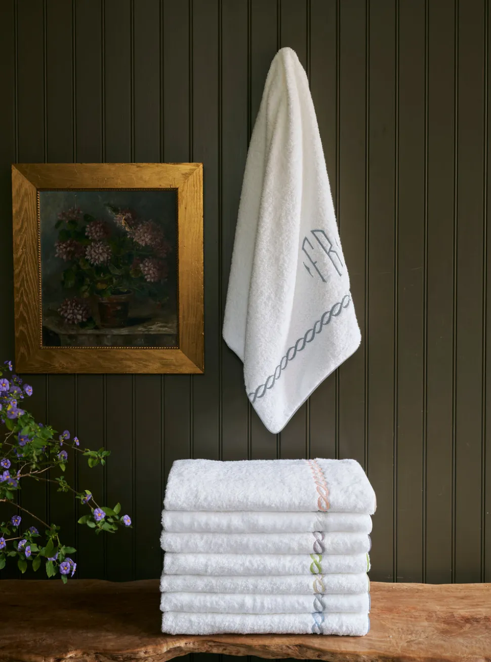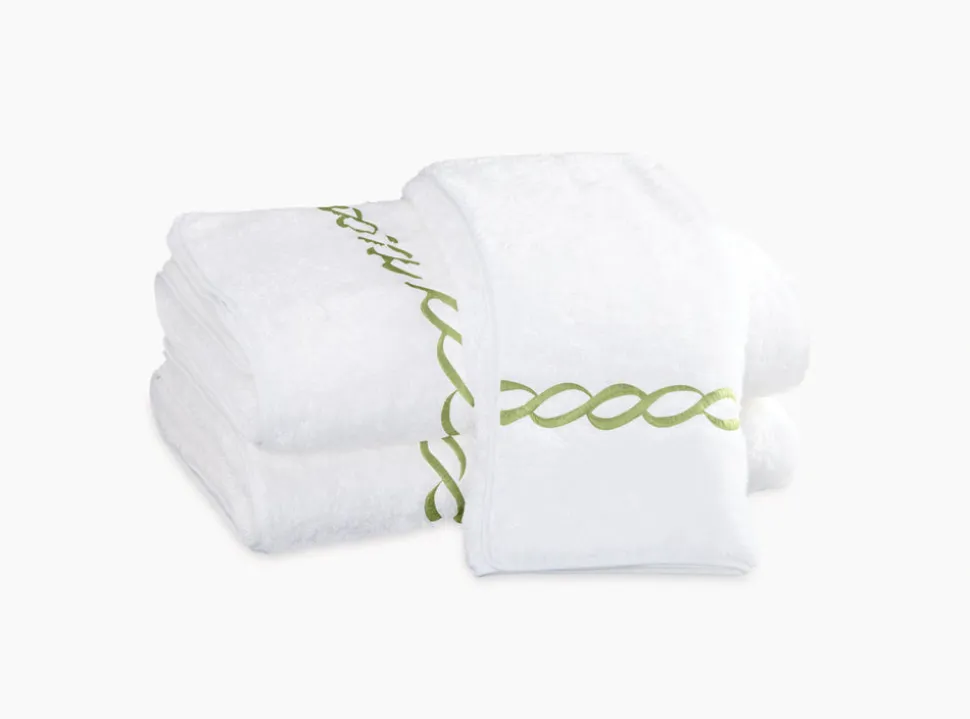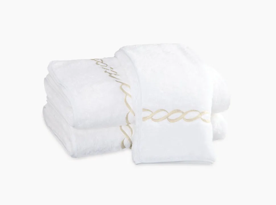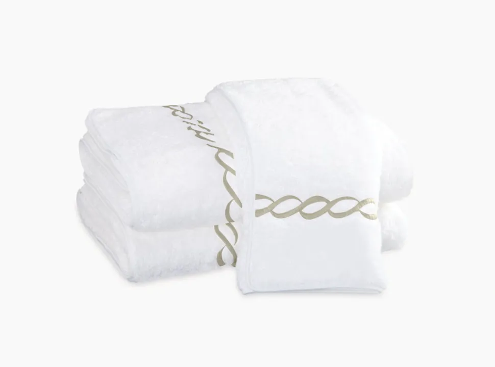 For nearly 100 years and three generations, Matouk has handcrafted luxury linens from the world’s finest materials. Their dedicated artisans in Fall River, Massachusetts are committed to creating the highest quality, most-loved bed, bath, and table linens for your home. The Classic Chain Bath Collection features a flowing motif inspired by ancient Greek treasures, neatly embroidered on Cairo long-staple cotton terry. Its soft colors and subtle movement create a timeless, understated beauty.