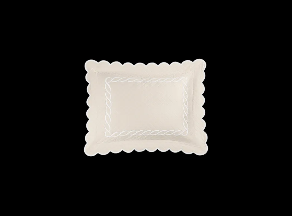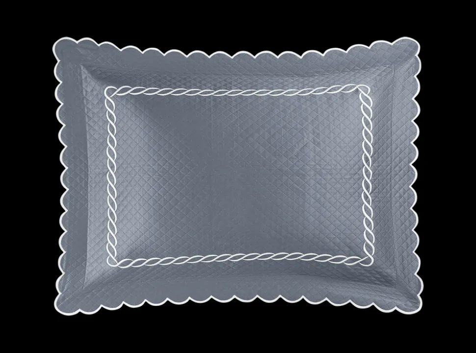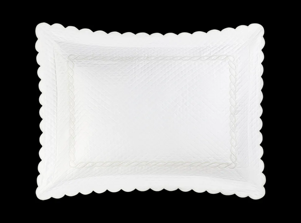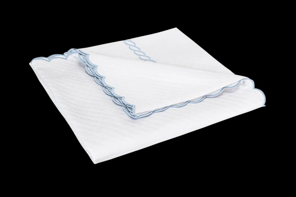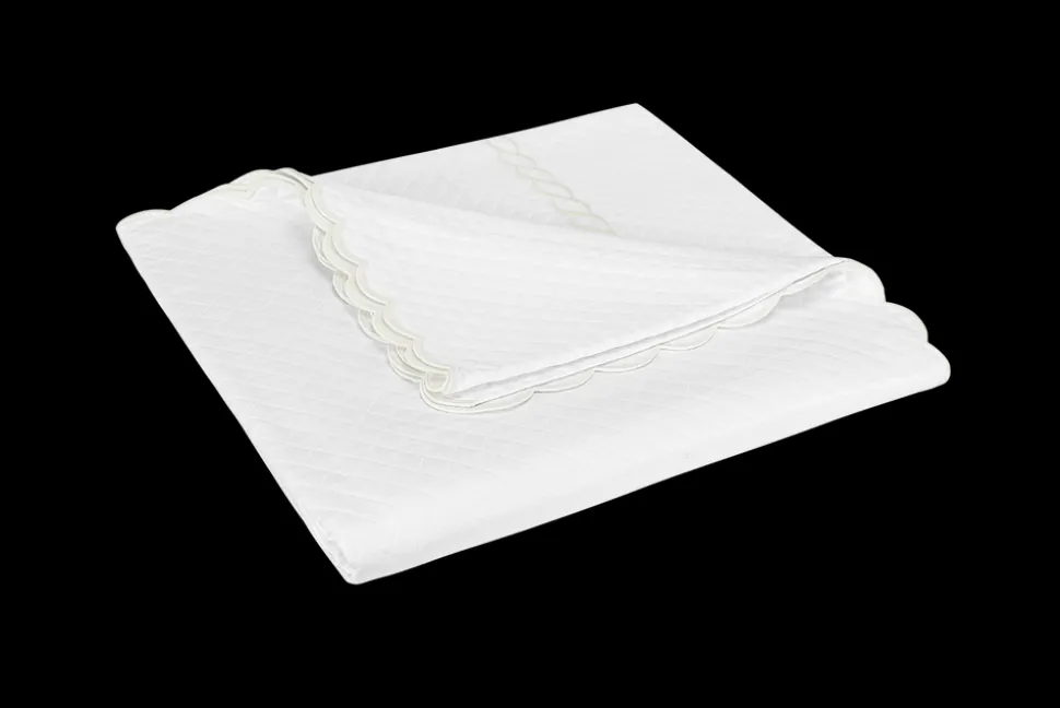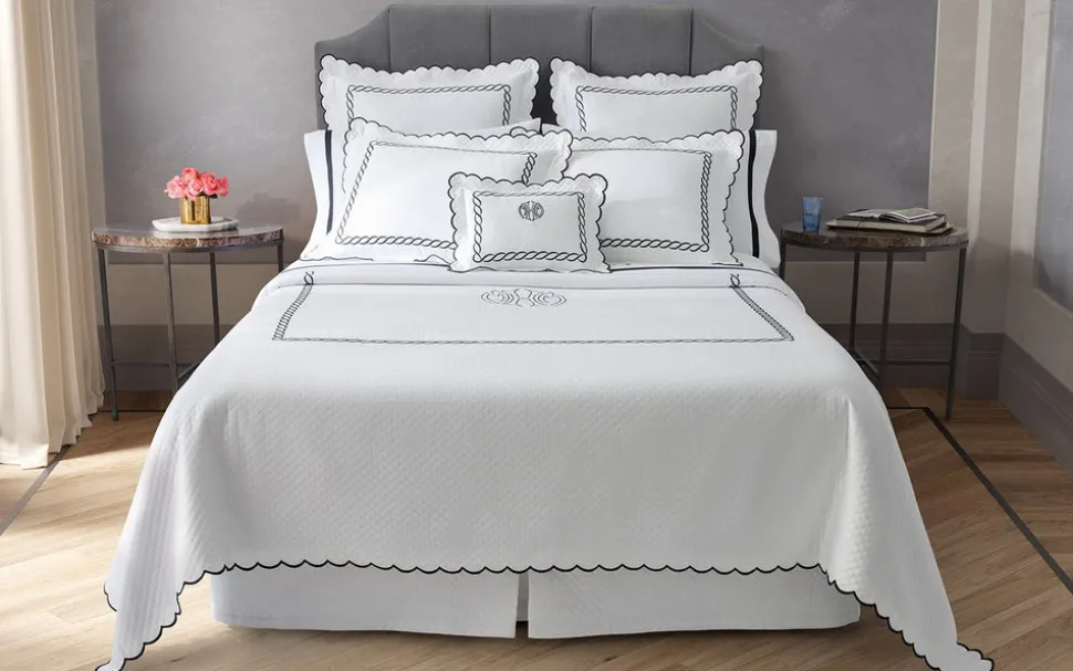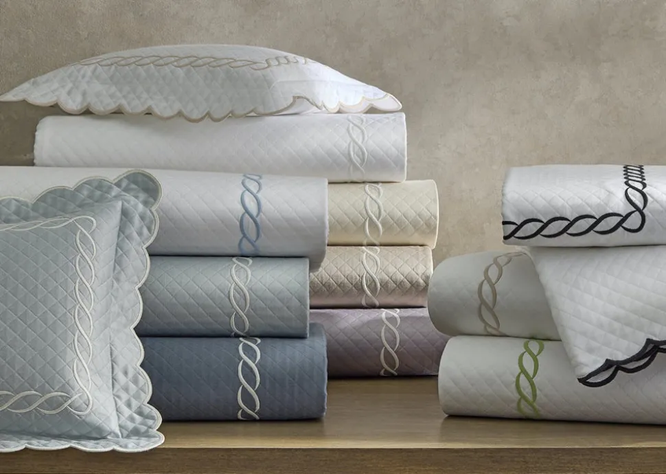 For nearly 100 years and three generations, Matouk has handcrafted luxury linens from the world’s finest materials. Their dedicated artisans in Fall River, Massachusetts are committed to creating the highest quality, most-loved bed, bath, and table linens for your home. A quintessential embroidery motif, Classic Chain Scallop Matelassé Collection is an essential for your linen closet. Here the careful details find a home in the brand’s sublime Petra diamond matelassé fabric for the most comfy and restful sleeps.