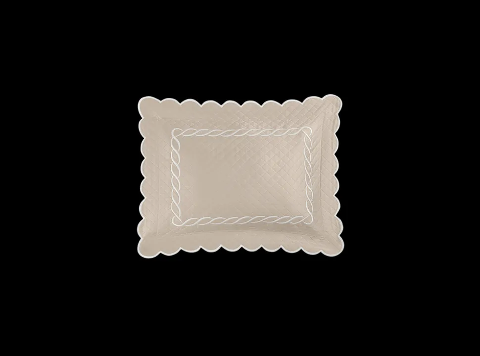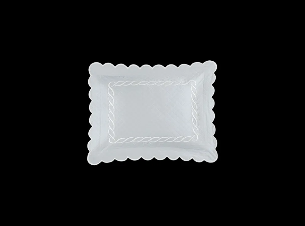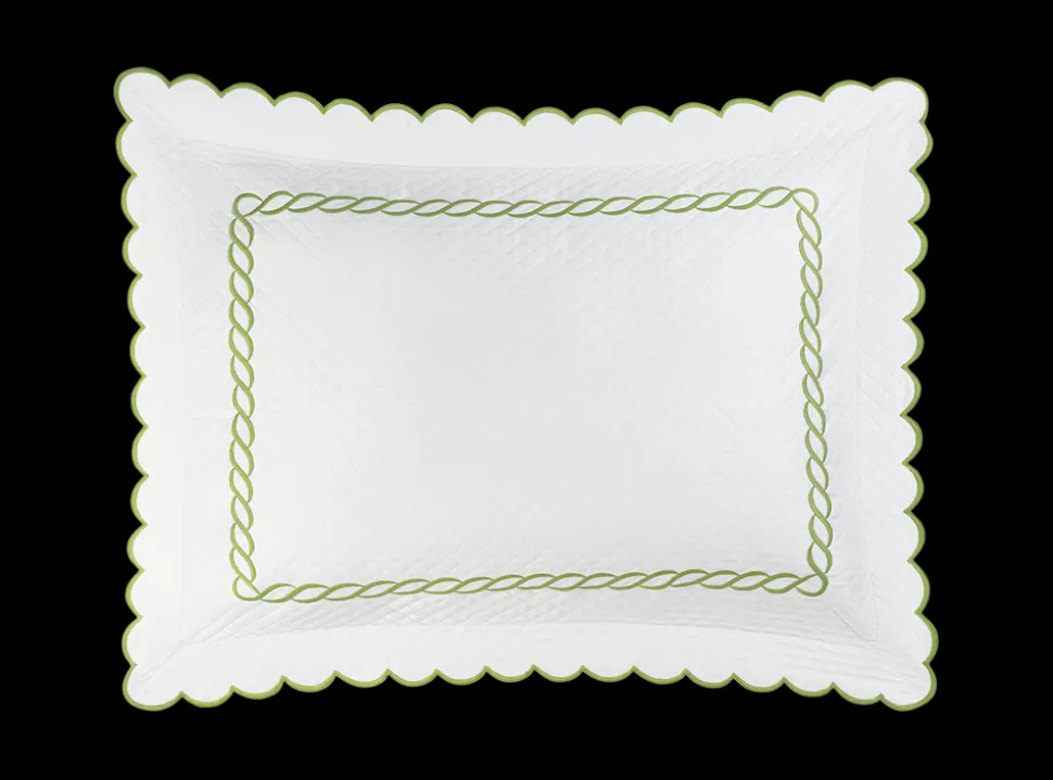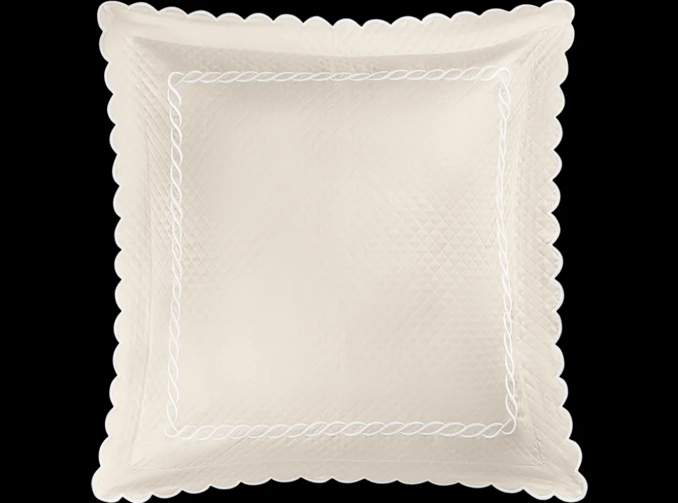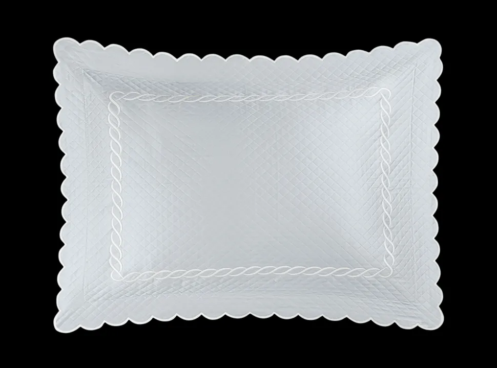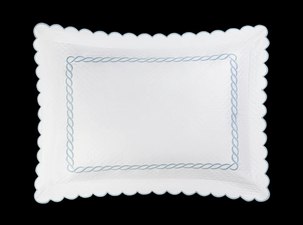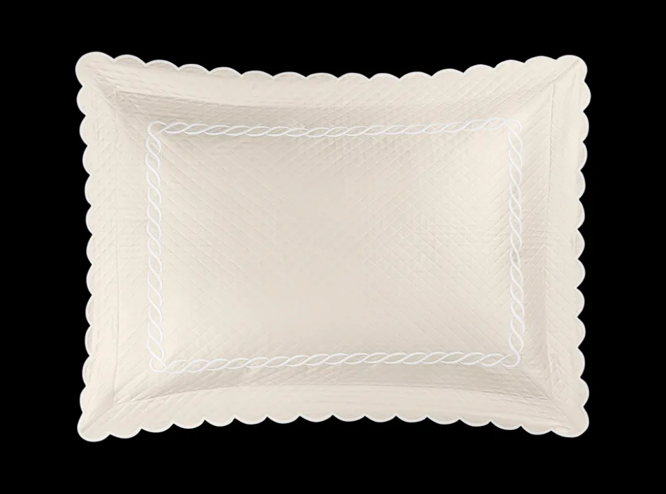 For nearly 100 years and three generations, Matouk has handcrafted luxury linens from the world’s finest materials. Their dedicated artisans in Fall River, Massachusetts are committed to creating the highest quality, most-loved bed, bath, and table linens for your home. A quintessential embroidery motif, Classic Chain Scallop Matelassé Collection is an essential for your linen closet. Here the careful details find a home in the brand’s sublime Petra diamond matelassé fabric for the most comfy and restful sleeps.