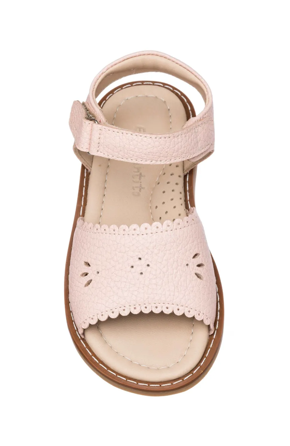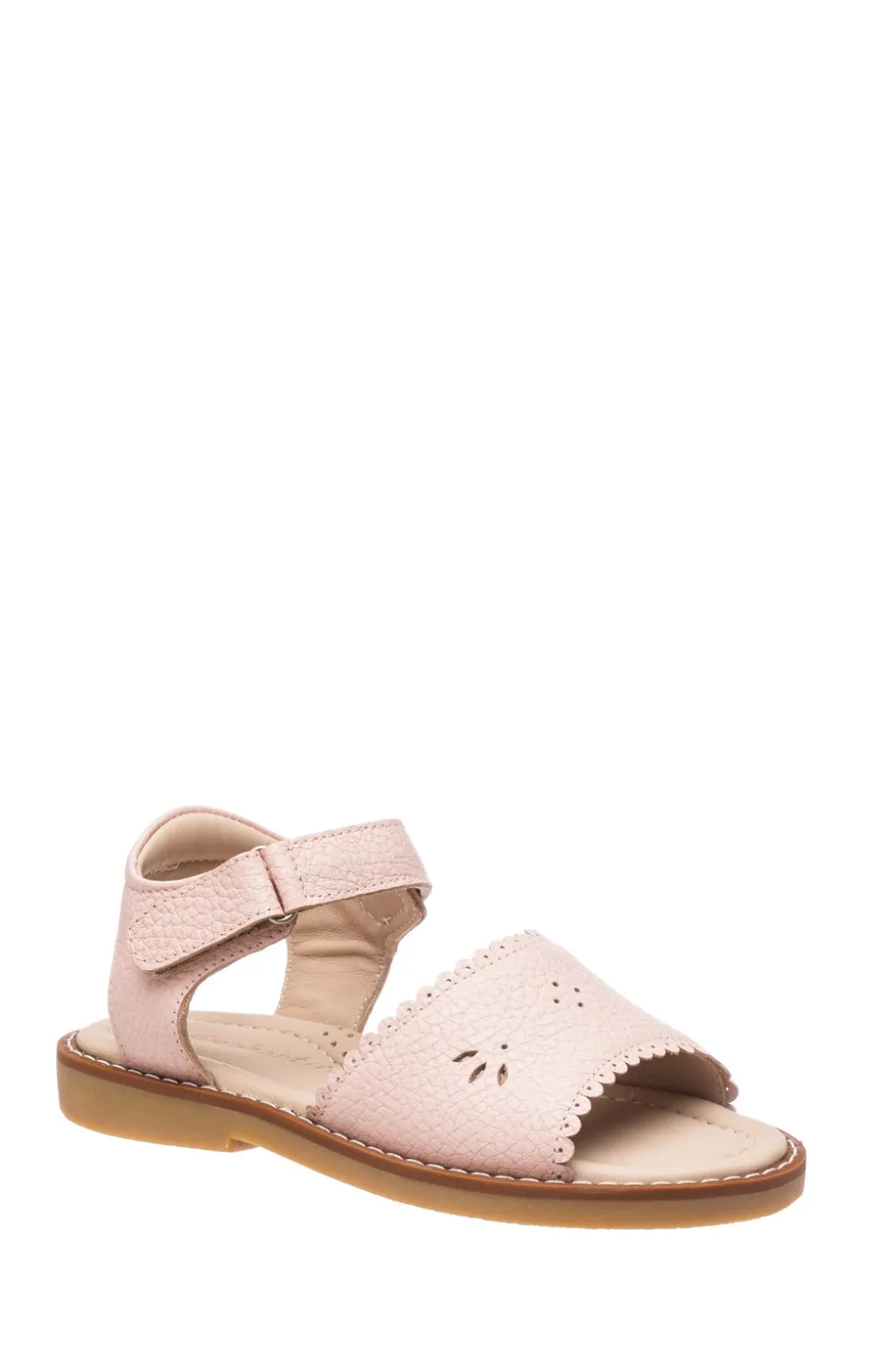 Premium leather with scalloped edging and cut-outs. Handmade with ankle strap and hook-loop closure. Breathable leather lining for cool, dry feet. Padded insoles for extra cushioning and support. Durable rubber soles with excellent traction.
