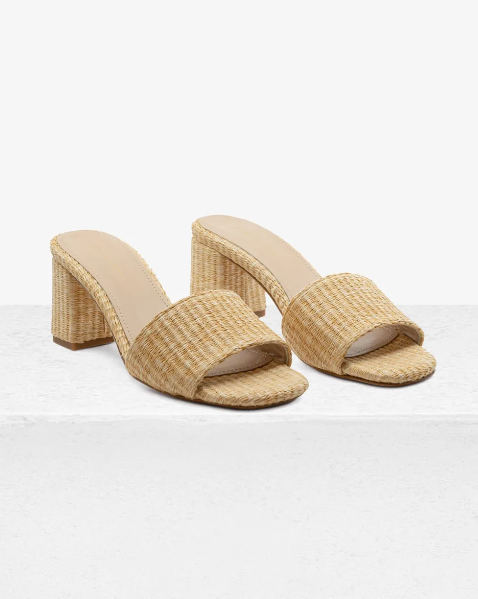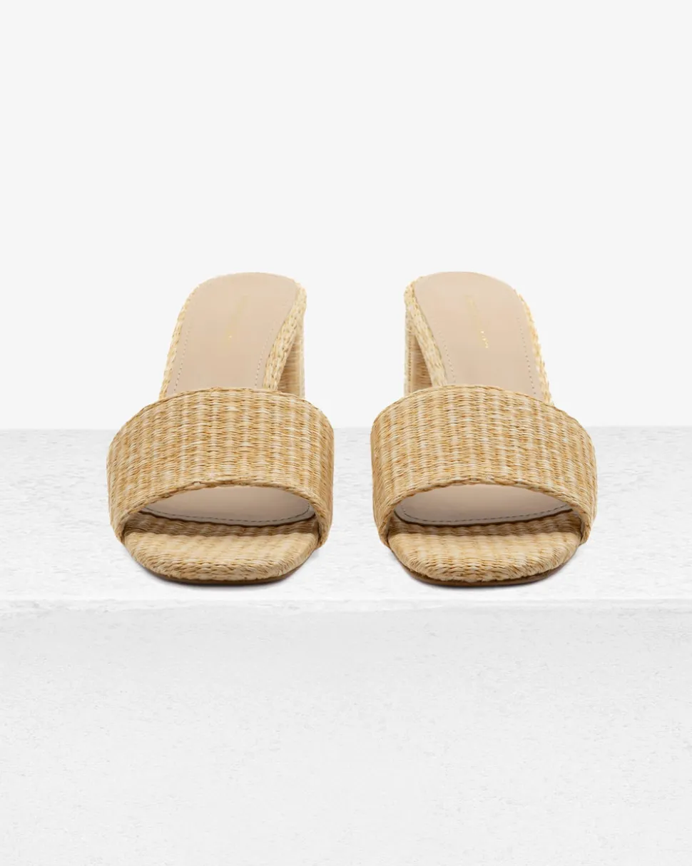 Launched in 2017, Andrea Gomez is driven by a two-fold mission of creating refined, timeless footwear and providing essential resources to Venezuelan children in need. Drawing inspiration from the undeniable beauty of Venezuela, the Andrea Gomez collection is inspired by, thoughtfully designed by and created for women. The round-toe Claudia Natural Raffia Mule is made from natural raffia with a 50mm block heel, offering both comfort and style.