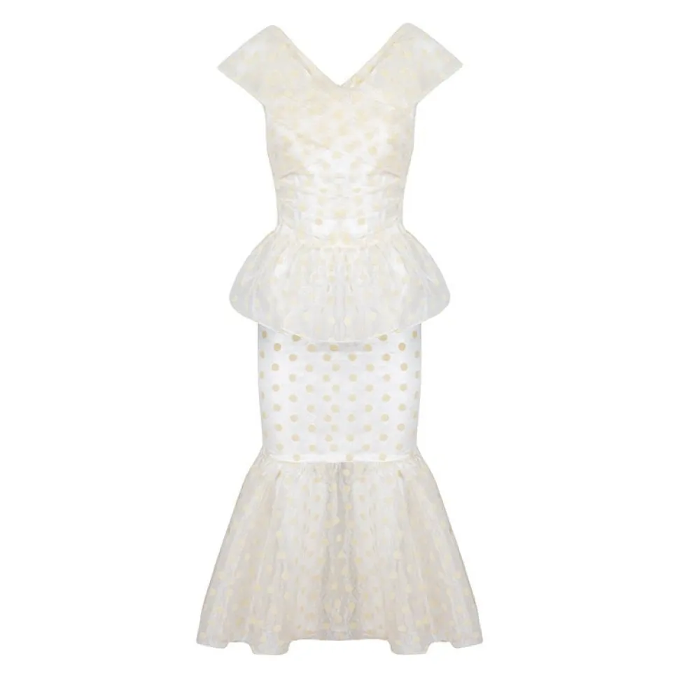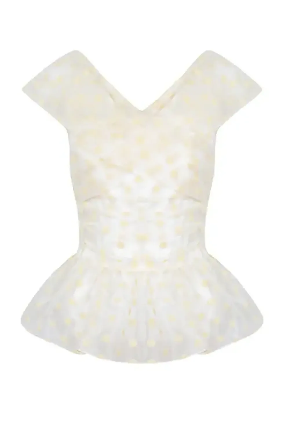 Loulou, founder of Loulou La Dune, extends her refined feminine touch from interior design and tableware into the realm of ready-to-wear fashion. Recognizing the desire for beautifully crafted, effortless, and chic clothing, she has created a capsule collection that integrates elegance and ease into everyday wear. The flattering fit, combined with elegant details, makes the Clemence Set in Organza Polka Dot a must-have addition to your summer wardrobe. Embrace the beauty and comfort of the peplum silhouette, and let it be your go-to outfit for all your summer outings.