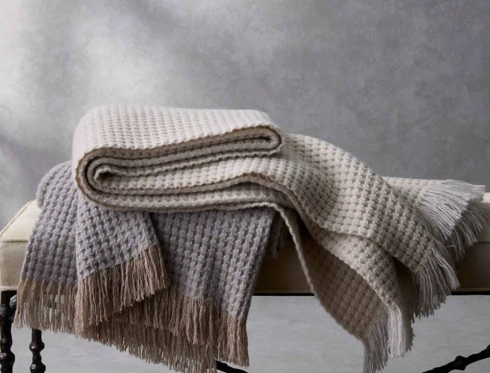For nearly 100 years and three generations, Matouk has handcrafted luxury linens from the world‚Äôs finest materials. Their dedicated artisans in Fall River, Massachusetts are committed to creating the highest quality, most-loved bed, bath, and table linens for your home.¬†One of the most decadent pieces in Matouk’s collection, the¬†Cleo Cashmere Throw is washed¬†using a special method that gives the cashmere added loft and texture. We love the¬†subtle basketweave pattern and combed fringe.¬†