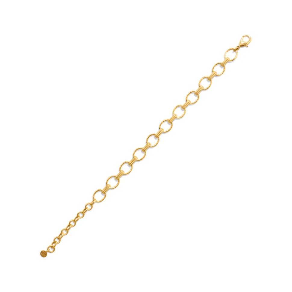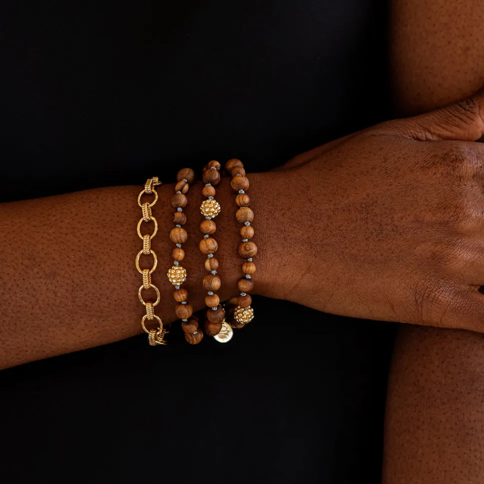 Half-Parisian, half-Texan, Capucine De Wulf’s unique upbringing was the inspiration for her namesake jewelry line. Her accessories combine French romance with an American sensibility; see the Cleopatra Small Link Bracelet in Hammered Gold. Modern, feminine, and confident, this piece boasts careful links in a braided golden motif. Wear it with cocktail attire, to the office, or just to brunch; it goes with everything.