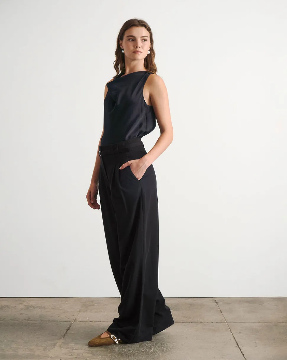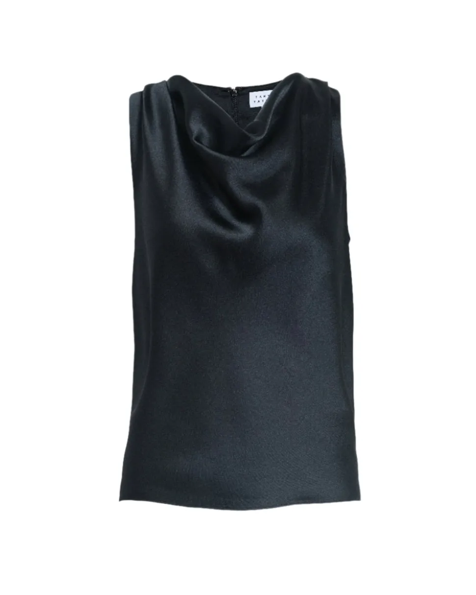Creating clothing that inspires confidence, celebration, and community, Tanya Taylor is a New York-based womenswear brand whose mission is to provide practicality and style to a range of ready-to-wear in inclusive sizes. Each collection is thoughtfully designed through the artful use of color, texture, and original hand-painted prints. The Clorinda Top in Black is a refined satin crepe separate designed to elevate everyday styling. With a delicately draped neckline and a fluid bias cut, it offers a luxurious hand feel and graceful silhouette—an effortless choice for polished, monochromatic dressing.