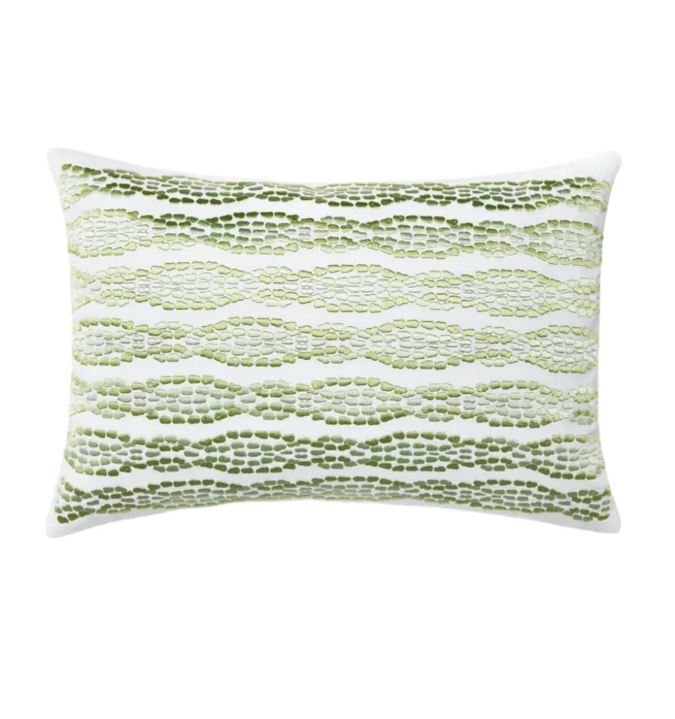 Renowned for their signature Italian craftsmanship, Sferra linens are famous for their quality, and lauded for their elegance, the world over. The Cobblestones 12×18″ Decorative Pillow in White & Green, from the SFERRA x Scalamandré collaboration, draws inspiration from the cobbled streets of Mystras, Greece. Embroidered with a flowing mosaic motif in soft willow green tones, this Italian-crafted accent brings a refined layer of texture and movement to the bed.