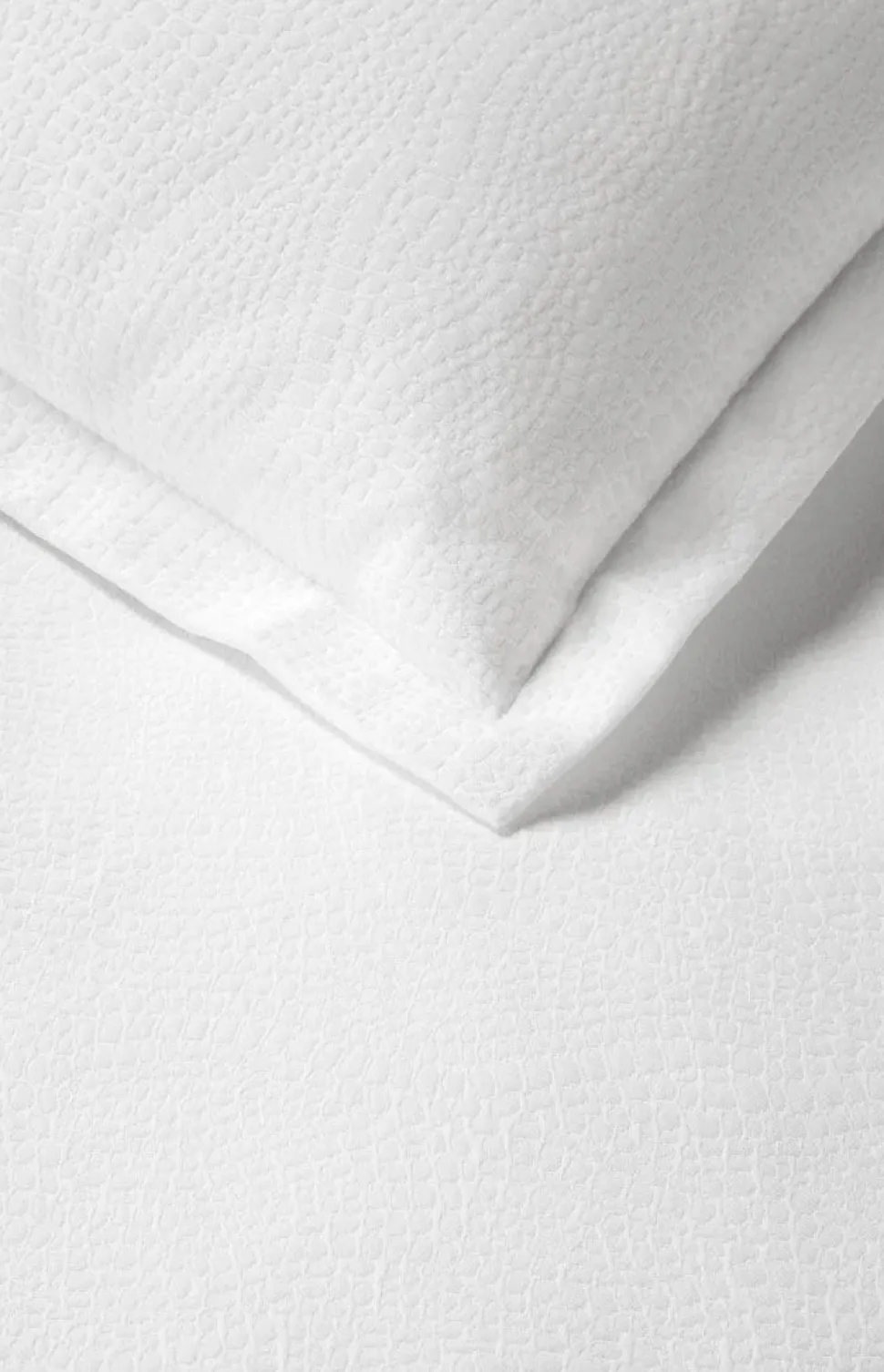 100% long-staple cotton jacquard. Color: White. Crafted in Portugal. Softly textured with an allover mosaic weave.