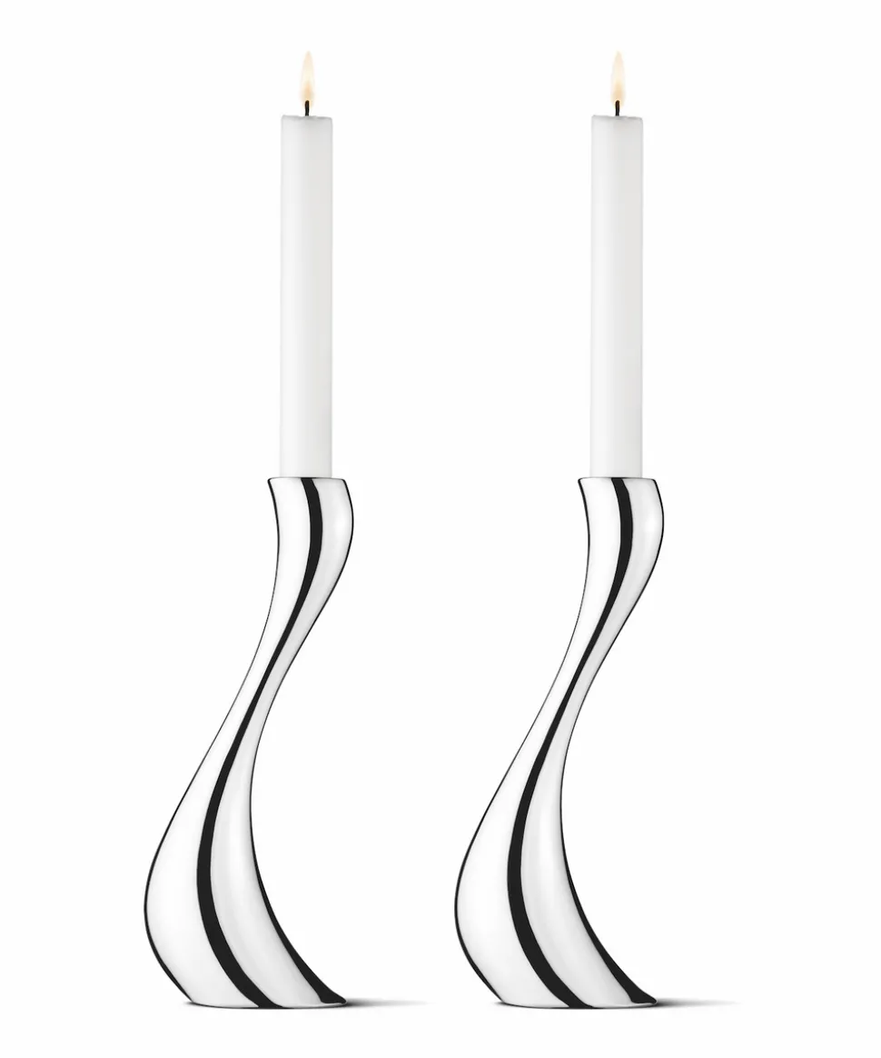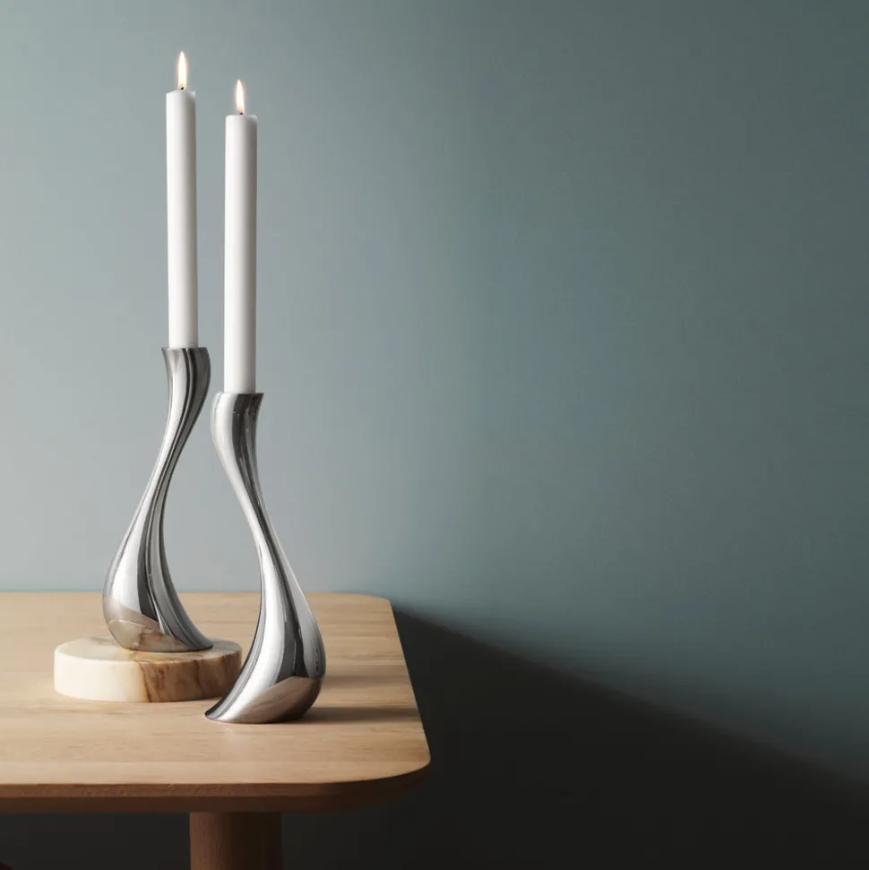 For over a century, Georg Jensen has developed jewelry, silverware, and home decor with purposeful, timeless, and functional beauty in mind. Rooted in Scandinavia, and inspired by the lines of Art Nouveau, the brand innovates, sustainable, unmistakable design with a distinctive vigor and unmatched quality. The Cobra Candleholder, Set of 2 work beautifully as a pair, spaced out on a table or mantelpiece, but are even more magical when they are stood close together, the curves complementing each other and giving the impression of movement, much like the candle flame itself.