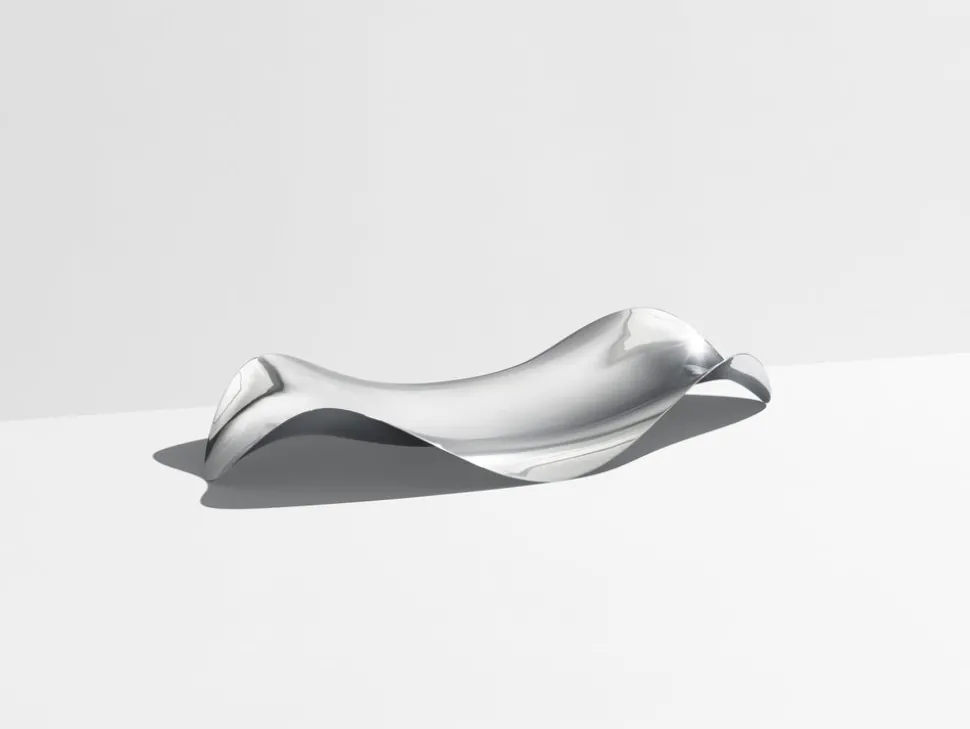 For over a century, Georg Jensen has developed jewelry, silverware, and home decor with purposeful, timeless, and functional beauty in mind. Rooted in Scandinavia, and inspired by the lines of Art Nouveau, the brand innovates, sustainable, unmistakable design with a distinctive vigor and unmatched quality. Like the surface of water or perhaps fabric caught in the wind, the Cobra Oval Tray seems to float above the table surface. The undulating shape makes the tray appear weightless but also makes it easy to carry and move.
