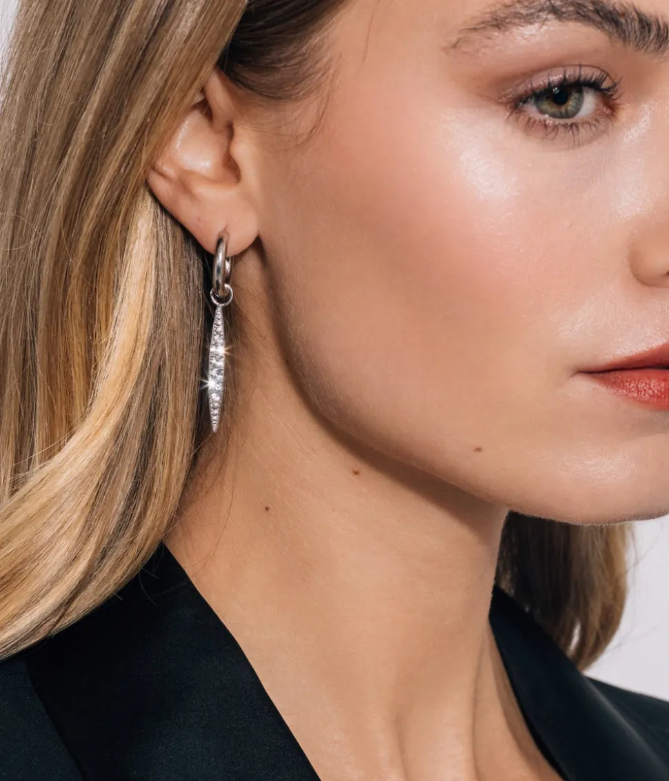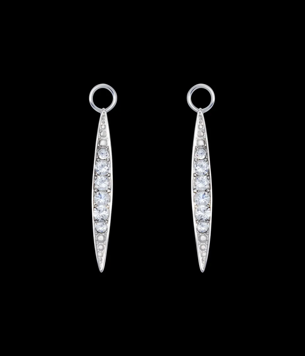 Loren Barham founded her jewelry line in 2005 as a means to reconnect with the vintage jewels that inspired her as a child. Today, the dynamic, artistic, original pieces of Loren Hope, designed at their flagship store in Newport, Rhode Island, serve as a bridge between nostalgia and thoroughly modern women everywhere. The pointed, droplet Comet Trail Huggie Charms are designed for mixing, matching and layering. Sparkling in silver, these earrings are tapered at the end for a sharp, sophisticated look.