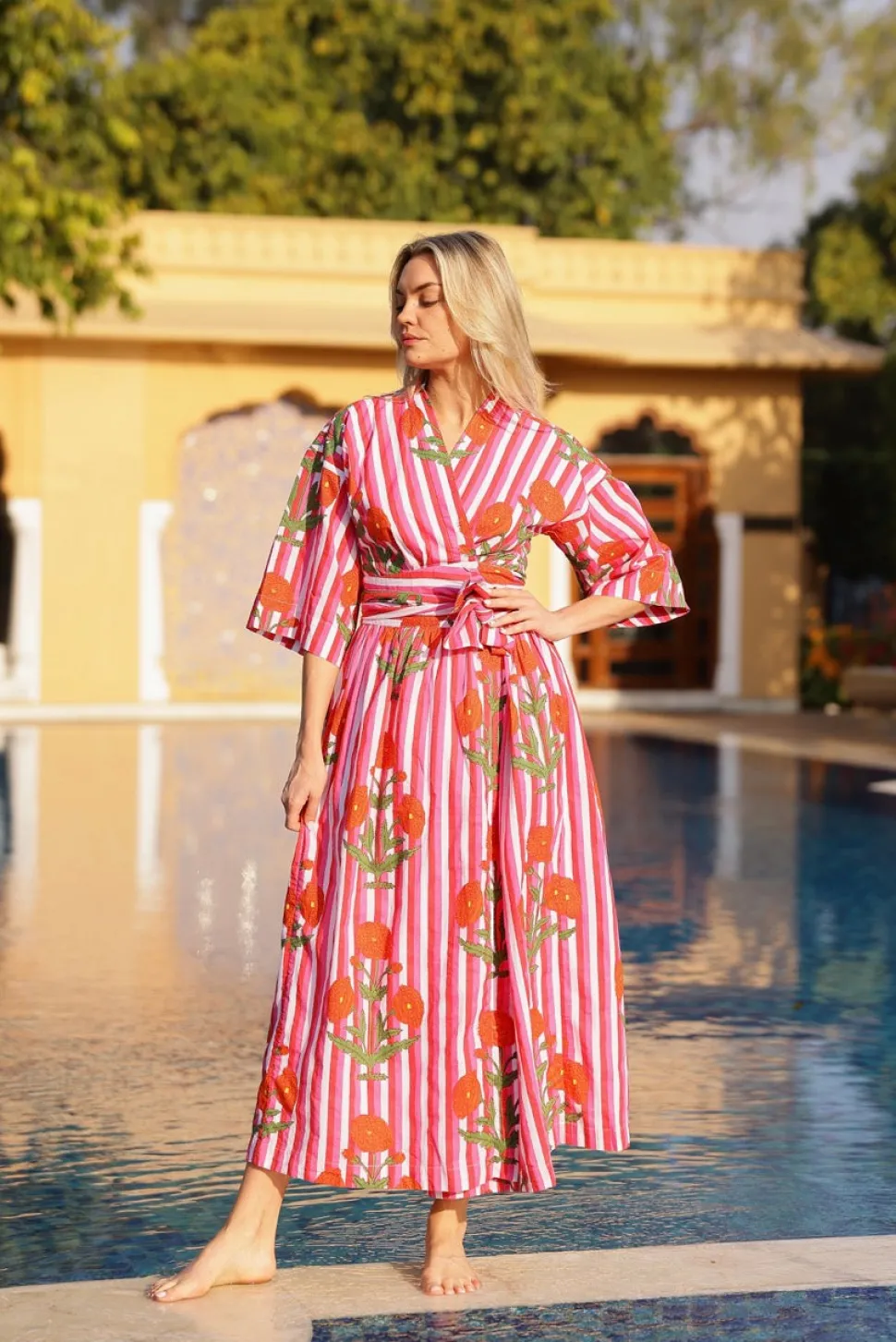 Introducing Maison Marigold, a new luxurious small-batch women’s resortwear brand inspired the wanderlust of travel. Our collections effortlessly transition from beachside lounging to an elegant evening on the town. The simplicity of design and classic silhouettes are the foundations for each and every style. Hand-printed linen and cotton make for comfortable and effortless pieces that are both feminine and flattering. The Como Floral Wrap Dress was designed for a figure-flattering wrap style and a classic V-neckline. The wrap style allows for a customizable fit, making it comfortable and perfect as a go-to travel dress.