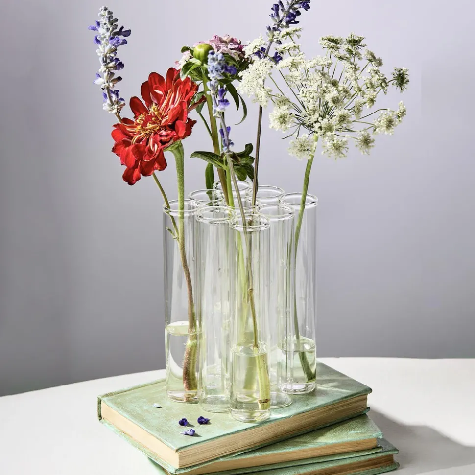 Started in a couple’s Westchester home in 1969, Two’s Company is a single destination for a wide range of stylish contemporary gifts, homewares, and accessories. From chinoiserie dish collections to accents for the sofa, the brand’s offerings are once sophisticated and accessible, making it an ideal gifting source for weddings, babies, new homes, birthdays, and more. Create a stunning centerpiece with the Connected Tube Flower Vase & Arranger in Gift Box, Set of 9. This exquisite glass arrangement is perfect for showcasing your favorite blooms, adding elegance to any room.