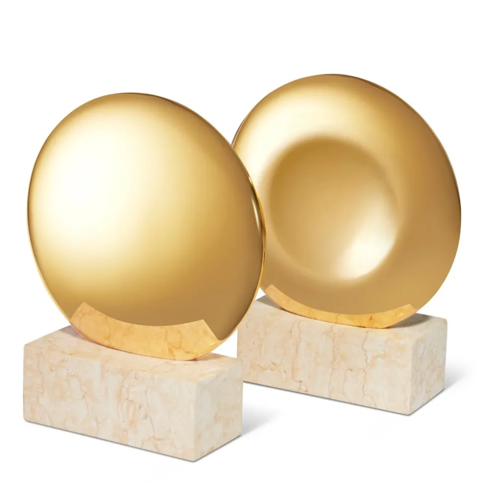 Effortless, beautiful living is what’s important to Aerin Lauder. That ease and refinement shines through in every detail of her collections of beauty products, home decor, and fashion accessories. Crafted in solid limestone, finished with brass and lined with suede, the Constantin Bookends in Brass are a sightly and sophisticated method to keep your books in place and your shelves in order.