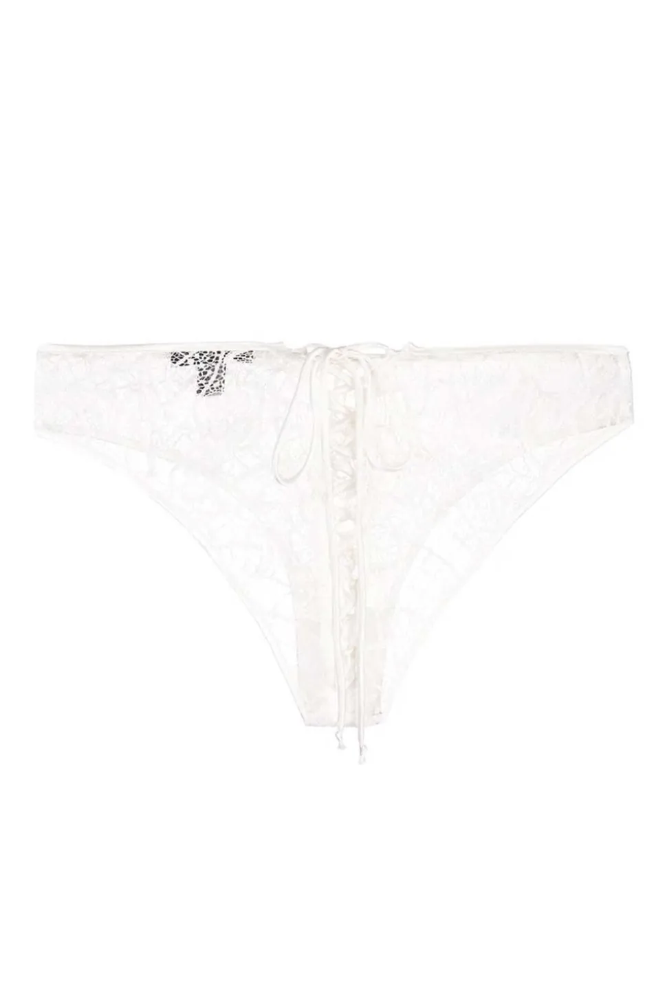 Based in New York, Kiki de Montparnasse is a lingerie, accessory, and ready-to-wear brand for those seeking a refined perspective on sensuality and seduction. These luxury collections are designed to be coveted, experienced, and enjoyed. The Coquette Corset Panty in Ivory features allover white lace and a low rise fit. This flirty sheer corset panty is ideal for any bride-to-be. Pair it with the Coquette Longline Bra.