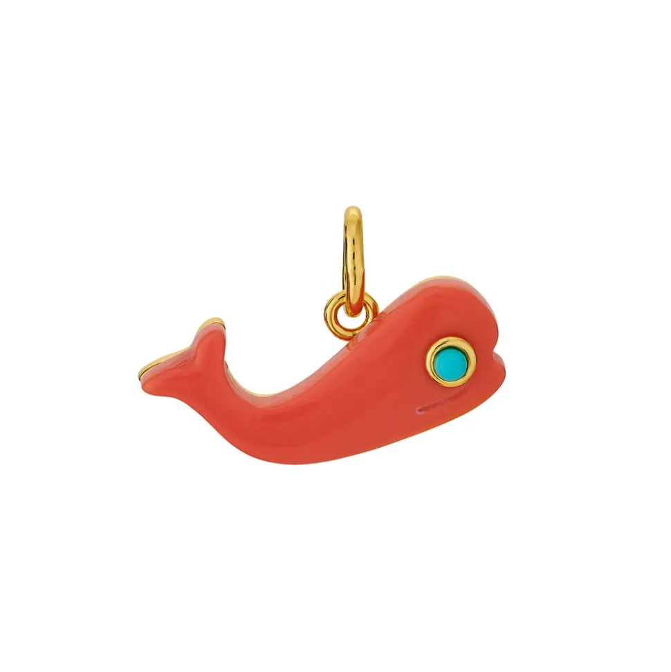 14K gold dipped. Coral with turquoise cabochon eye. Whale charm silhouette. Chain sold separately.