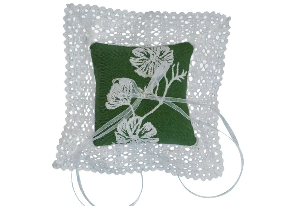 Esencial Hogar’s founder, Celina Wright, wants every gathering around the table a memorable one. What began as a small online shop based in El Salvador offering globally sourced treasures developed into its own collection of table linens —with linens sourced from India and finished by hand in El Salvador—designed to elevate the everyday. The ideal pillow to help escort your ring on the big day, the Cosmo Lace Pillow in Olive features a vintage white crochet lace border and a thin silk organza ribbon bow used to secure the rings for the ceremony. Utterly gorgeous and an instant keepsake.