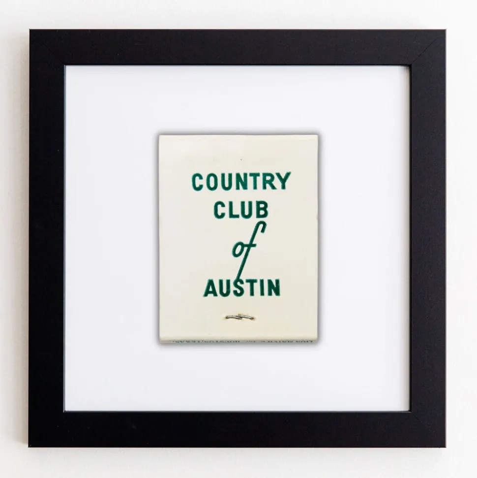 Handcrafted in the heart of Atlanta, Match South frames vintage matchbook images of professional sports teams, golf courses, restaurants, and hometown favorites. Founded in 2015, the brand was created as a passion project to kindle love and support the restaurant industry—designing high-quality photographs of matchbooks from every corner of the country. Get into luxury and athleisure with the Country Club of Austin (Back) frame. Available in three colors, these frames have a white flat profile with clear acrylic for safe shipping.