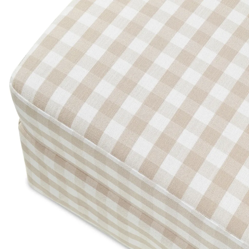 Made to treasure, Namesake brings quiet sophistication to the nursery and beyond. Imbuing heirloom-quality craftsmanship with modern sensibility, these timeless essentials are made to be cherished for years to come. The Crawford Gliding Ottoman in Tan Gingham pairs classic pattern with cozy comfort. Designed to complement the Crawford Glider, this ottoman features a smooth gliding motion that mirrors the chair—creating a soothing, synchronized experience for quiet moments with baby.