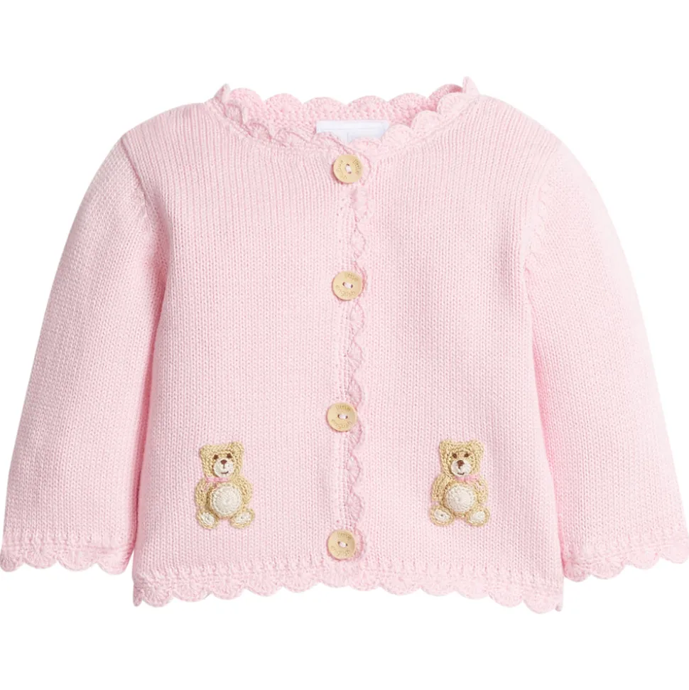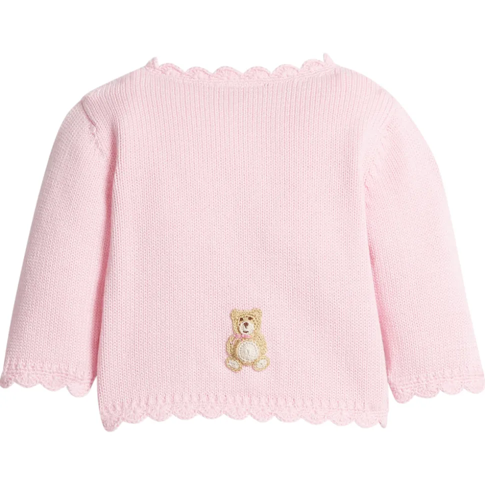 Shannon Latham founded Little English in 2004 with the belief that children should always be well-dressed. Employing hand-smocking, hand-embroidery, and the very best fabrics, Shannon and her daughter design timeless pieces that will be worn for generations to come. The Crochet Cardigan in Pink Teddy Bear is a signature Little English style year after year, and this version in soft pink with a precious Teddy Bear motif is a must-have for every baby girl. With delicate wooden buttons and hand-crocheted Teddy Bears, this sweater pairs beautifully with the Crochet Playsuit – Teddy Bear.