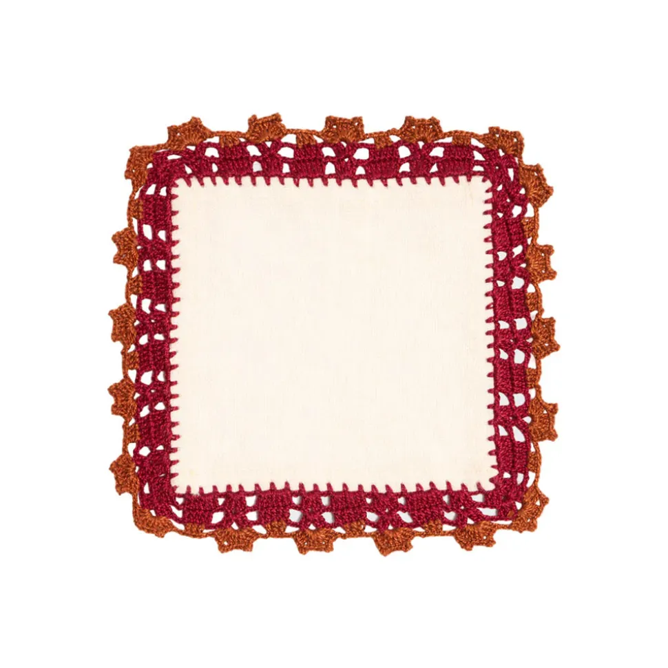Inspired by the pages of Cabana—a magazine for a new generation of globetrotters—Casa Cabana’s homewares both explore and expand the worlds we share with our interiors. The Crochet Embellished Cocktail Napkins, Set of 6, are crafted from a linen-cotton blend and finished with hand-crocheted edging in a trio of rich tones. With picot and looped detailing, each napkin brings artisanal texture and a refined touch to your entertaining essentials.