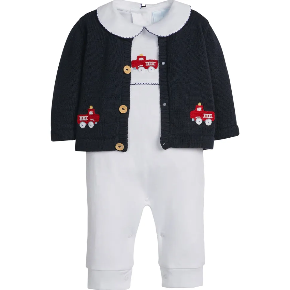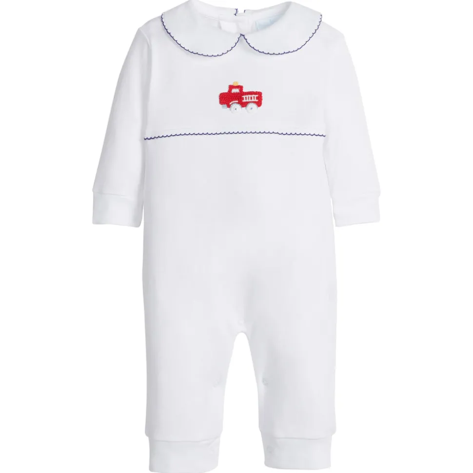 Shannon Latham founded Little English in 2004 with the belief that children should always be well-dressed. Employing hand-smocking, hand-embroidery, and the very best fabrics, Shannon and her daughter design timeless pieces that will be worn for generations to come. The Crochet Playsuit in Fire Truck is crafted from 100% pima cotton and trimmed in navy blue picot, offering softness and comfort for little ones. A bright red fire truck, hand-crocheted by expert artisans, adds playful charm and enduring quality. Pair with the Crochet Cardigan in Fire Truck for an extra cozy layer.
