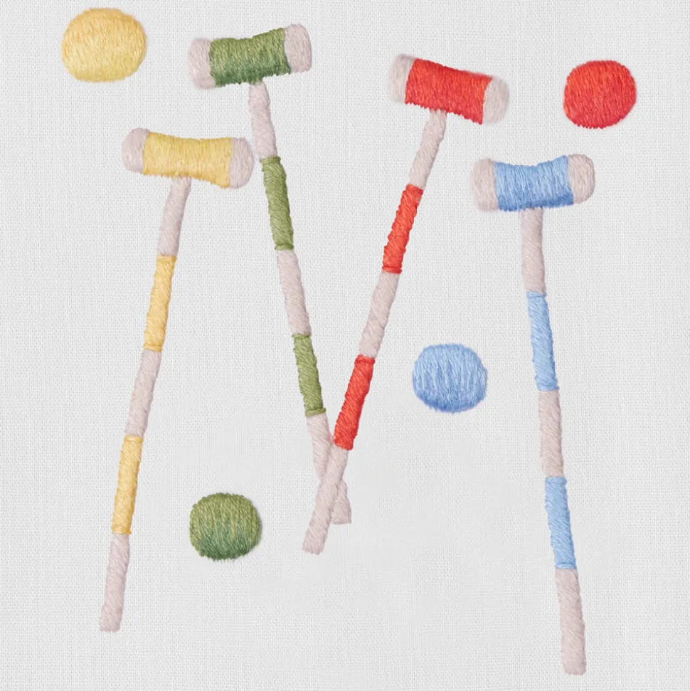 Founded in 2012, Henry Handwork brings joy to the everyday with handmade textiles for the home. Placing tradition and quality at the forefront, the brand resurrects the fading craft of hand-embroidery and needlework, embracing the heritage of finely-wrought European linens. The Croquet Hand Towel adds a spirited touch to home décor with hand-embroidered croquet mallets and colorful balls. A cheerful nod to leisurely games on the lawn, it’s a charming accent for kitchens and game day gatherings.