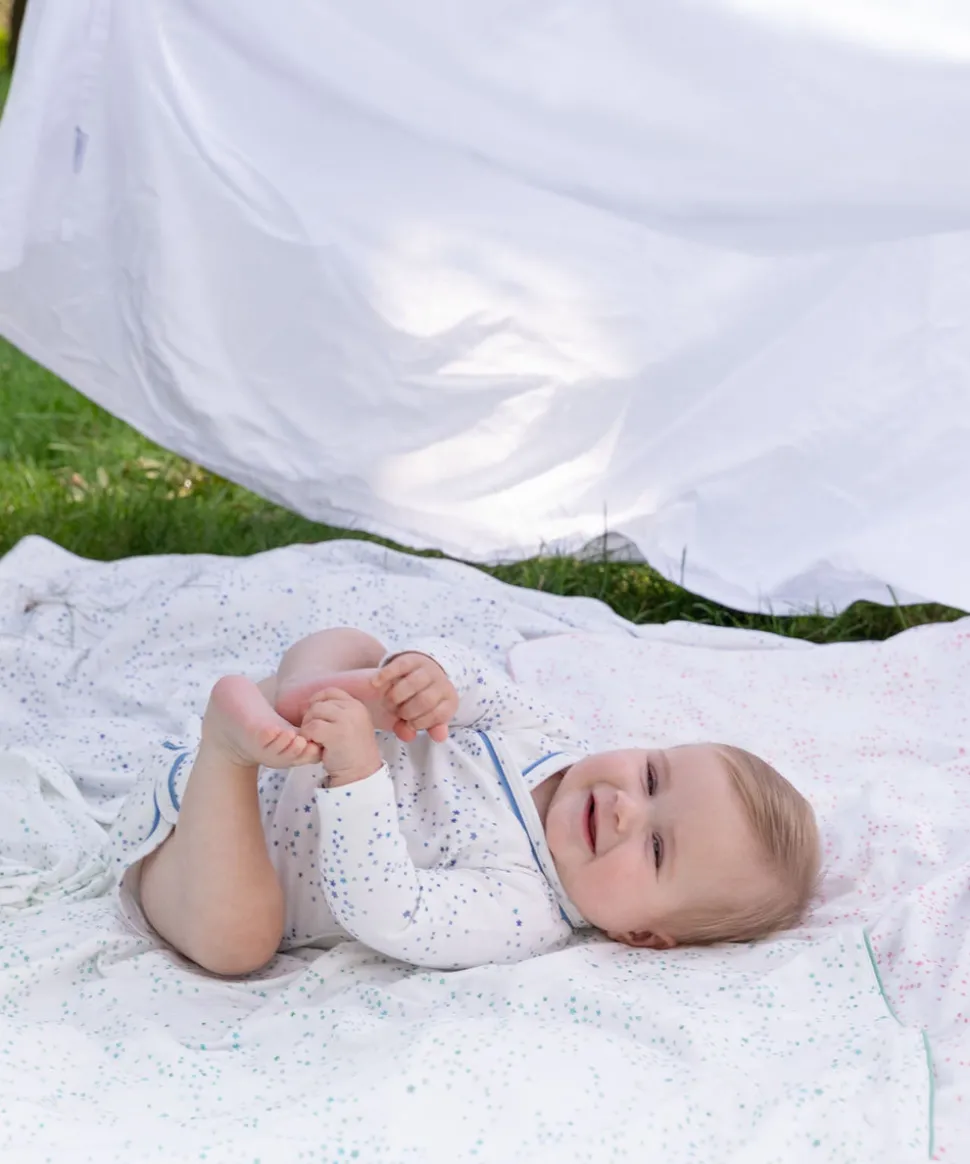 100% organic cotton jersey. Opens completely for easy changing. Interior snaps for extra secure fit.