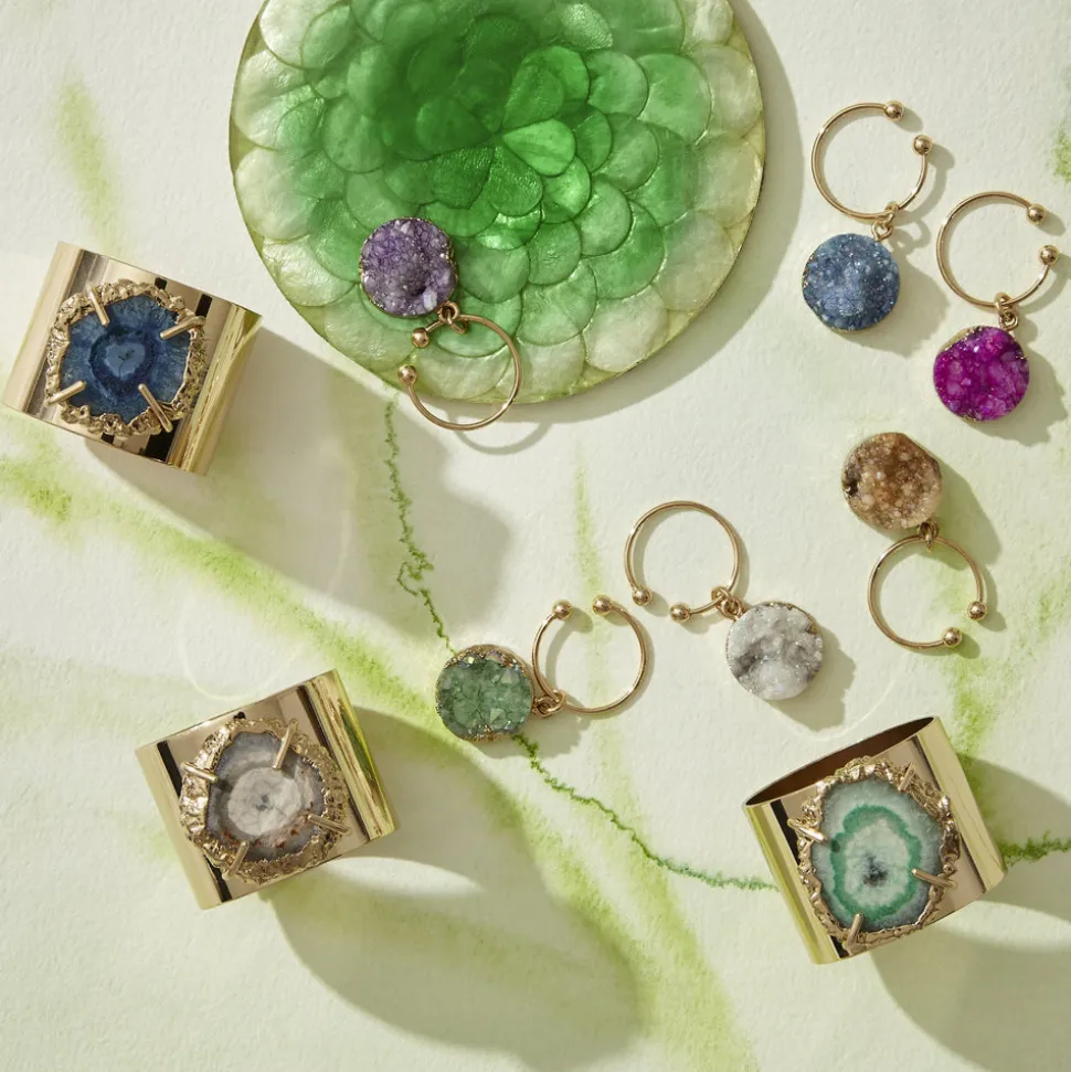 Inspired by her mother’s flair for holiday decorating, Joanna Buchanan has turned her love of travel and knowledge gleaned from twenty years in fashion retail into an eclectic line of tabletop, barware, gifts, and decor. Boasting unique pieces, the Crystal Quartz Napkin Rings in Indigo, Set of Two also feature electroplated edges in gold, so that the color really pops. Welcome your guests to the table with these sophisticated conversation starters.