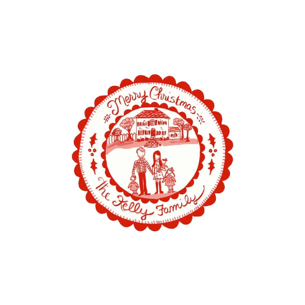 Self-taught artist Tricia Lowenfield crafts one-of-a-kind whimsical pieces that will immediately become beloved family treasures. Entirely hand-illustrated, the custom Christmas Sticker Gift Tags will feature a merry red illustration of your family of six or fewer in Tricia’s signature artistic style.