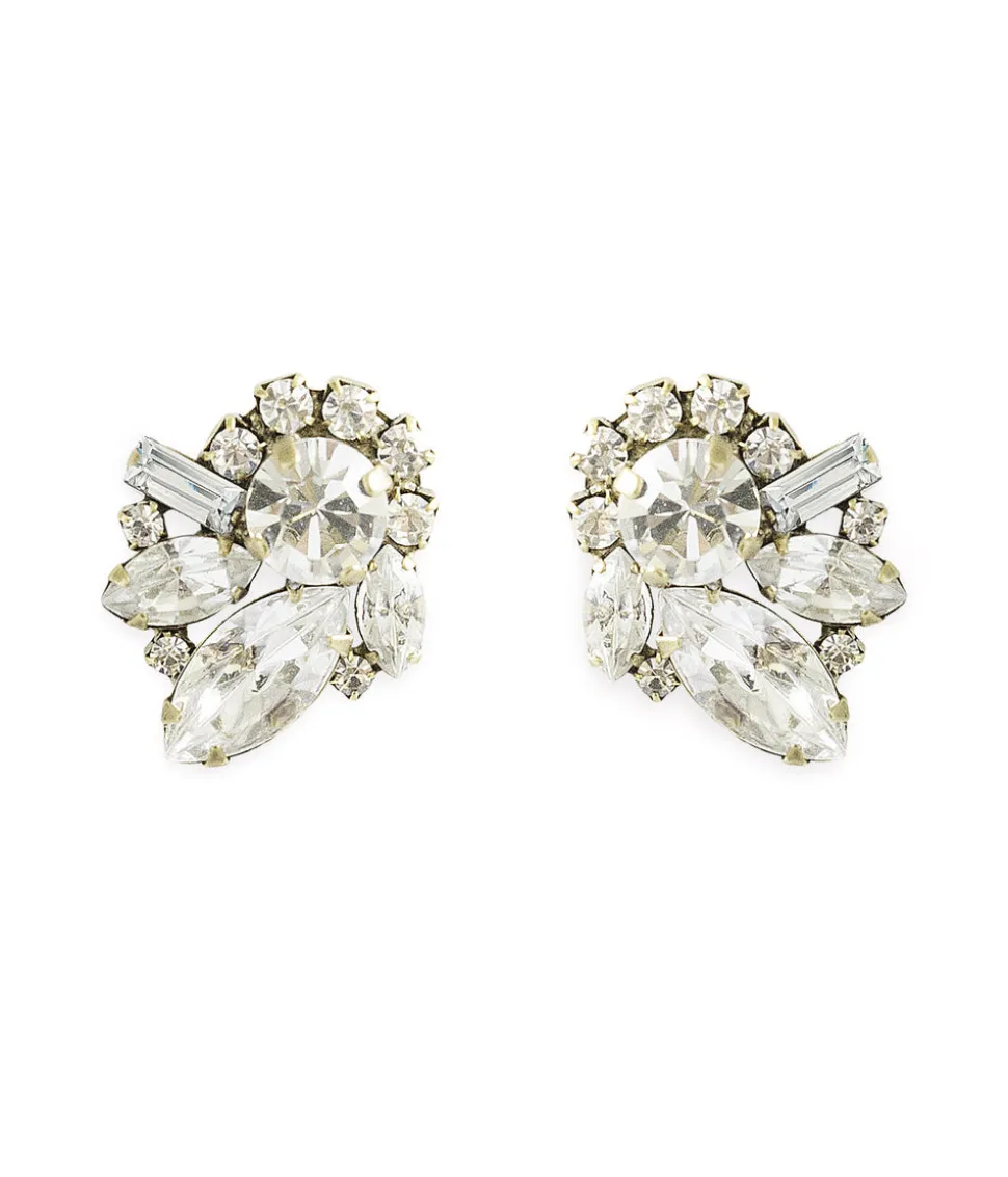 Loren Barham founded her jewelry line in 2005 as a means to reconnect with the vintage jewels that inspired her as a child. Today, the dynamic, artistic, original pieces of Loren Hope, designed at their flagship store in Newport, Rhode Island, serve as a bridge between nostalgia and thoroughly modern women everywhere. Designed for everyday or the big day, the Cynthia Earrings shimmer with every turn. These timeless, asymmetrical crystals are set in a cluster-like arrangement.