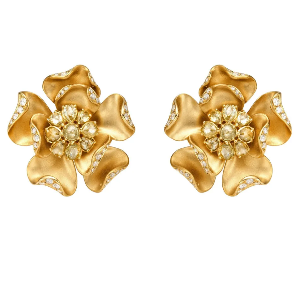 Luxury jewelry house, RUCHI New York, specializes in creating unique and versatile pieces that are exquisitely handmade and boast an heirloom quality. Crafted with precision in a variety of metals, each piece by this brand is designed to be cherished as a symbol of enduring love, whether it’s a stunning diamond ring or a timeless necklace. The Daffodil Diamond Stud Earrings showcase hyper-realistic floral forms in satin-brushed gold, with delicate petals sparkling in rose-cut diamonds—an effortlessly elegant choice for any occasion.