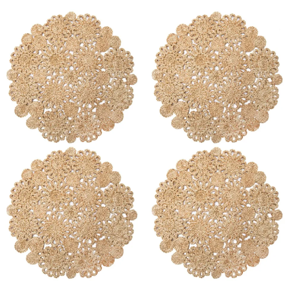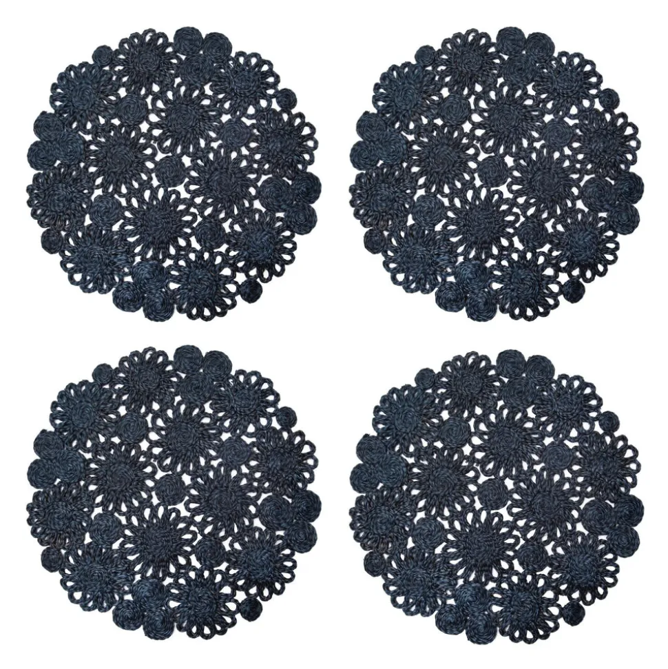 Inspired by stylistic trends from around the world, Caravan’s home accents embody an aesthetic that is both unique and unexpected, bringing everyday beauty and sophisticated simplicity to your home. The Daisy Jute 15″ Round Placemat in Navy, Set of 4, manages to be beautiful, sophisticated, and simple all at once. Handwoven from natural jute fiber, the scalloped floral design will enliven any table.