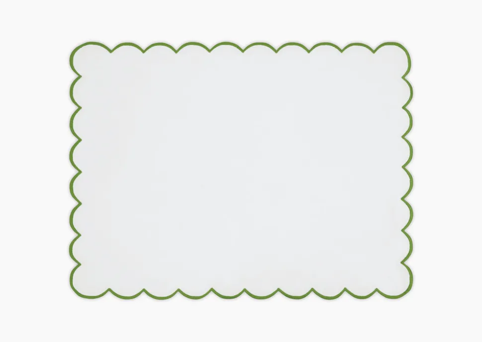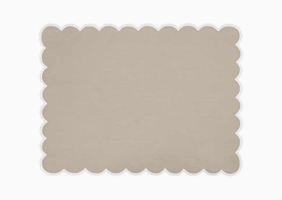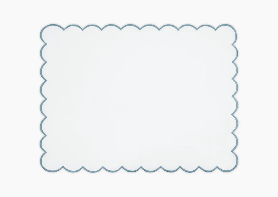For nearly 100 years and three generations, Matouk has handcrafted luxury linens from the world’s finest materials. Their dedicated artisans in Fall River, Massachusetts are committed to creating the highest quality, most-loved bed, bath, and table linens for your home. The Dakota Placemat is subtle and sublime, crafted from Valentina linen and complemented by a scallop embroidered trim in versatile hues. This elegant assortment includes napkins, placemats, runners and tablecloths that fit any occasion and provide a delicate base on which to layer additional prints.