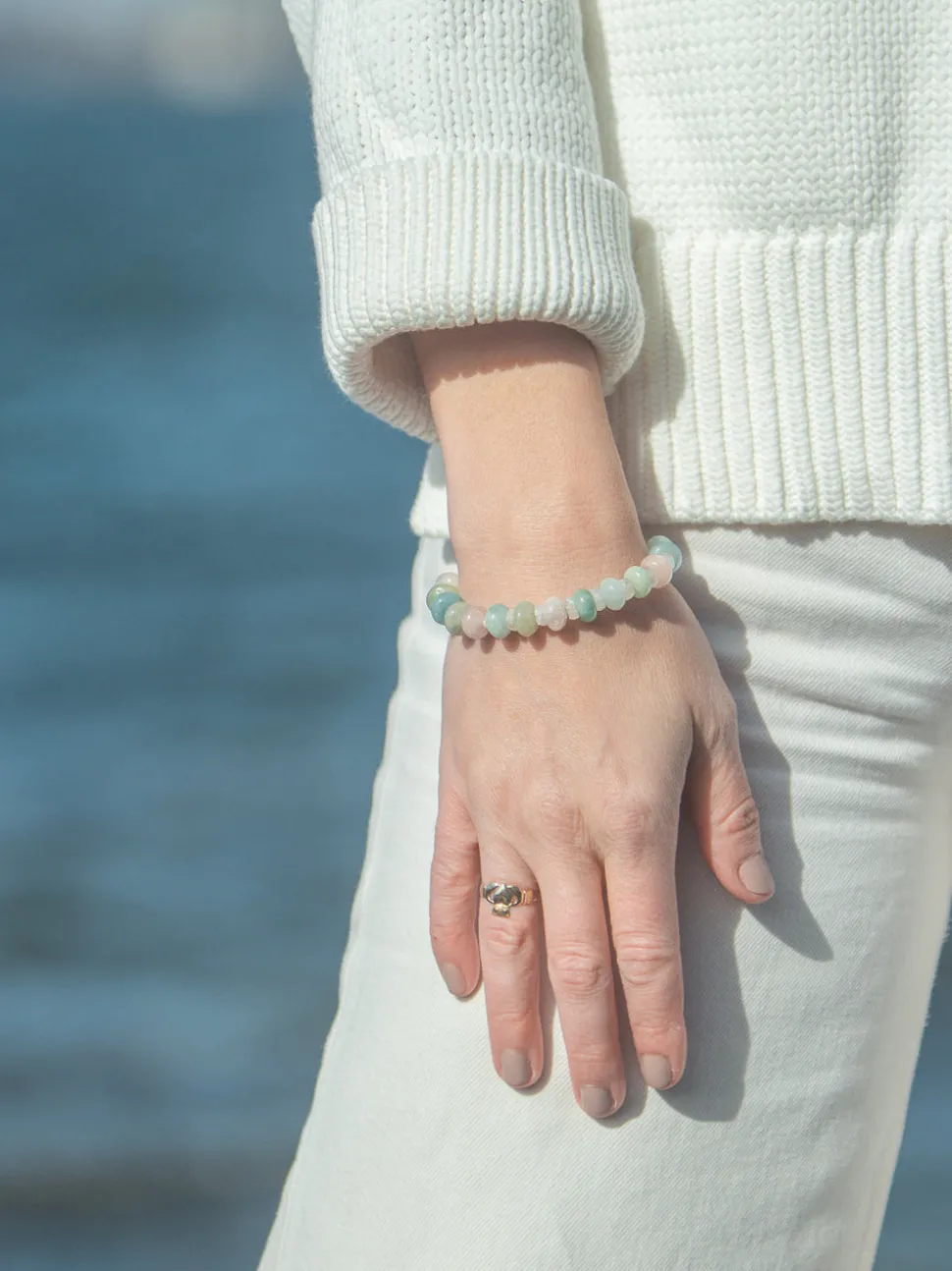 From Newport, Rhode Island, designer Kerry McGauley uses her experience in the fashion industry and inspiration from the town’s picturesque shoreline to craft singular yet timeless pieces—shining at the most memorable events and through your everyday. Adorned with morganite, moonstone gemstones, and a freshwater pearl charm, the Dana Bracelet in Multi features a gold-plated toggle closure.