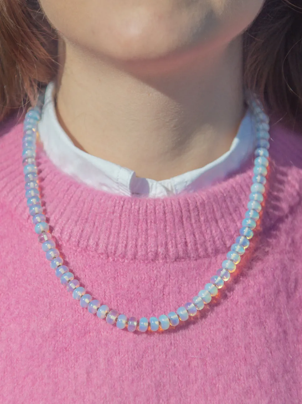 From Newport, Rhode Island, designer Kerry McGauley uses her experience in the fashion industry and inspiration from the town’s picturesque shoreline to craft singular yet timeless pieces—shining at the most special events, and through your everyday. With rows of opals separated by faceted smoky quartz gemstones, the Dani Necklace in Clear adds a subtle glow, and utter elegance, to any considered look.