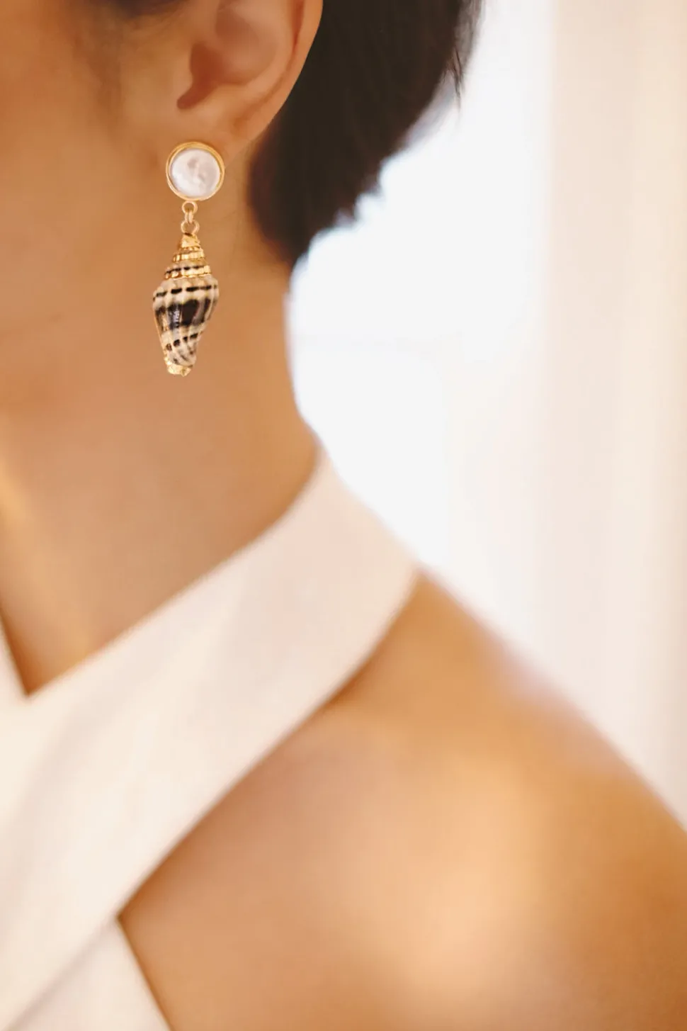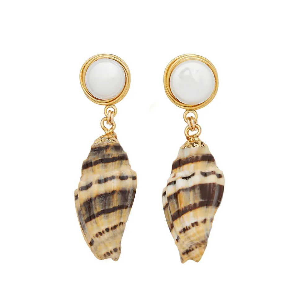 The mother-daughter duo behind Brinker + Eliza combine their experience in metalsmithing and fashion to create incredibly unique jewelry that feels custom-made. Employing pearls, shells, and earth’s most prized organic forms, these are pieces to be not just worn but treasured. The Darya Earrings brings trumpet shells and freshwater pearls together in this a gorgeous sea-inspired set. The dangling shells are featherweight, avoiding heavy pulling on your earlobes for a comfortable wear.