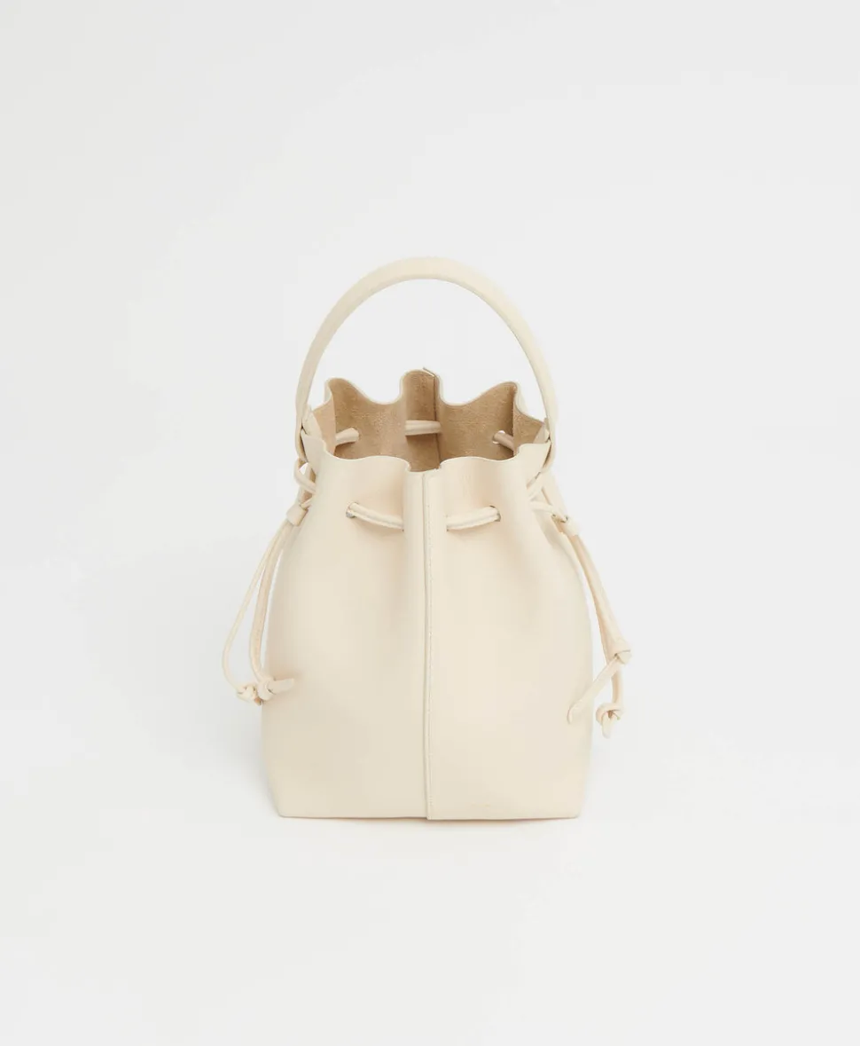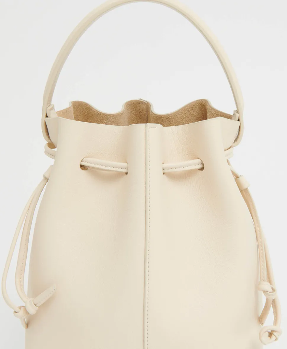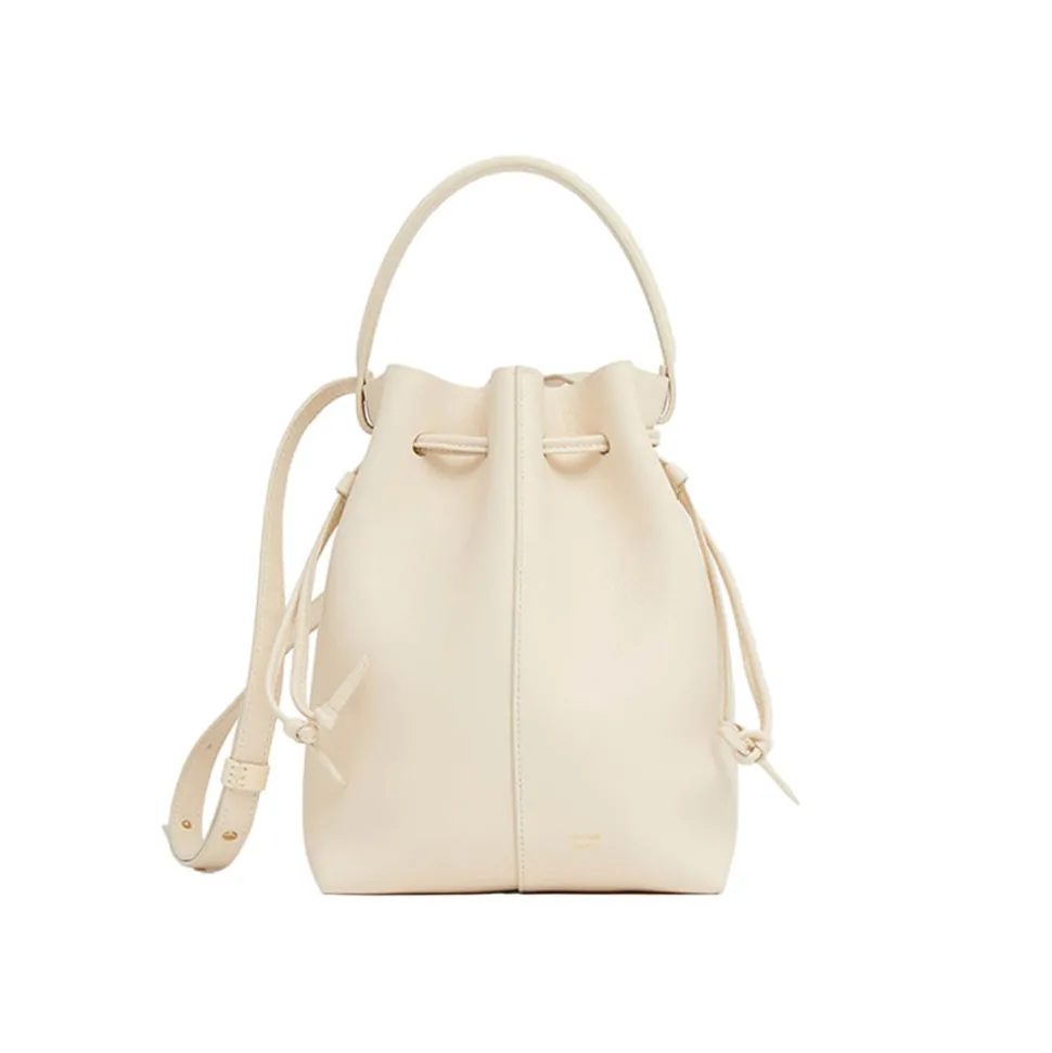 Founded in 2013, Mansur Gavriel redefines luxury through its distinctive approach to color and form. Born out of a passion for art and design, Rachel Mansur and Floriana Gavriel created two simple silhouettes—launching with just a bucket and tote. The brand’s designs, dreamt up in New York and crafted in Italy, continually challenge the notions of what expression can be. The Dea Bucket in Jasmine embodies minimalist elegance, crafted in soft Italian calf leather with a sculptural top handle and drawstring closure that nods to the house’s original bucket silhouette.
