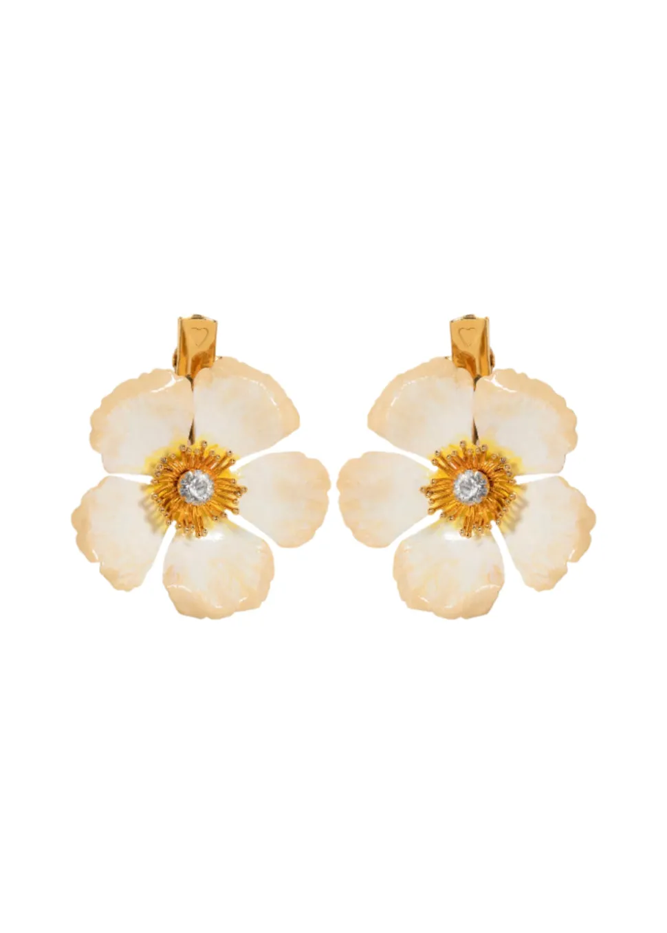 Debreanna Hair Clips in Champagne are a set of two and made by hand in New York of hand-painted 18K gold plated brass and Czech crystals with French steel clip closures.