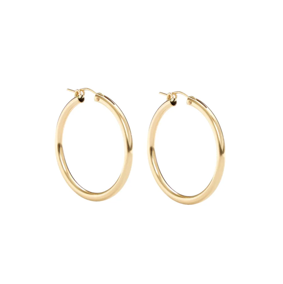 The mother-daughter duo behind Brinker + Eliza combine their experience in metalsmithing and fashion to create incredibly unique jewelry that feels custom-made. Employing pearls, shells, and earth’s most prized organic forms, these are pieces to be not just worn but treasured. An unimaginably elegant and unique shape define the gold-filled DeeDee Hoops.