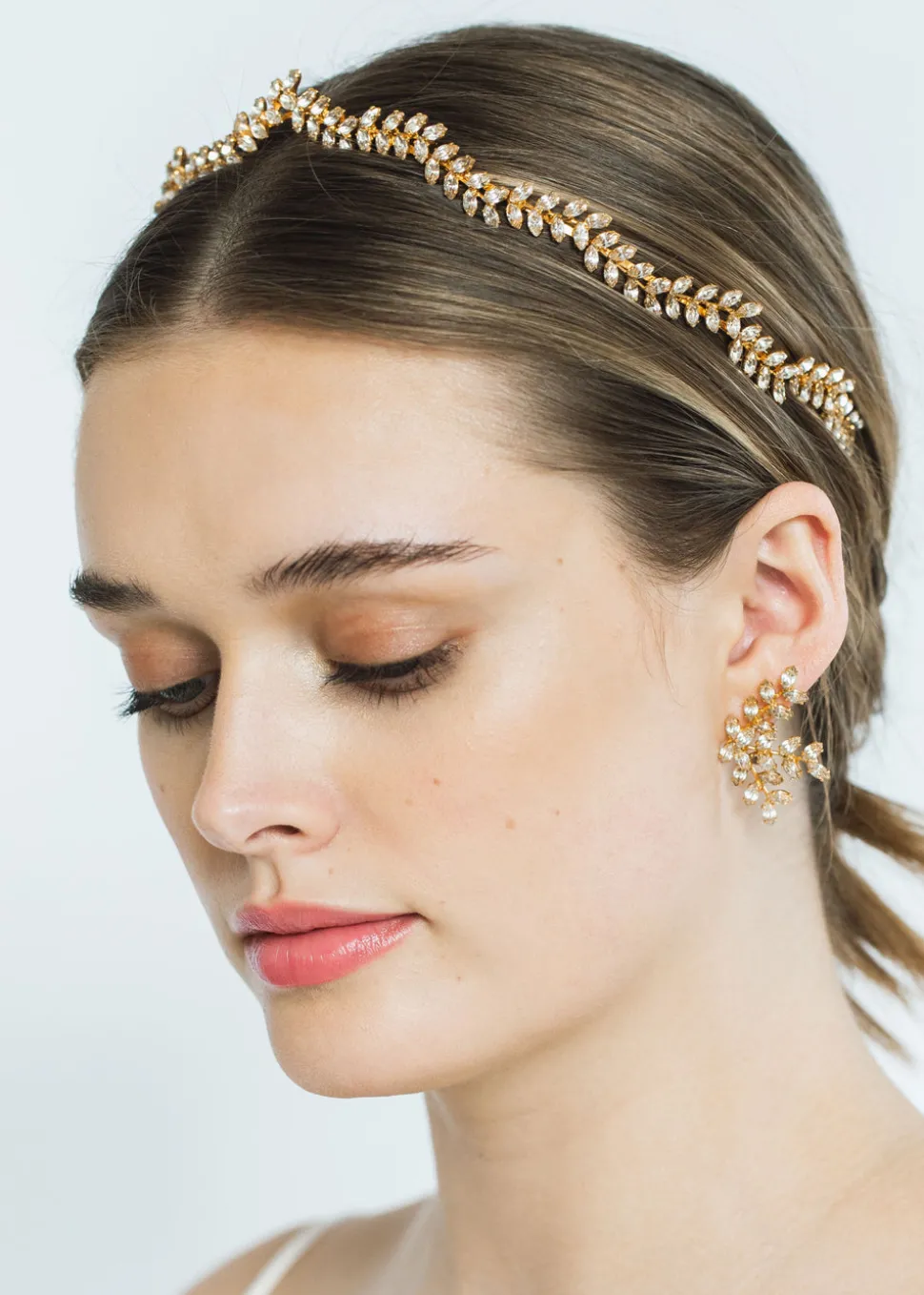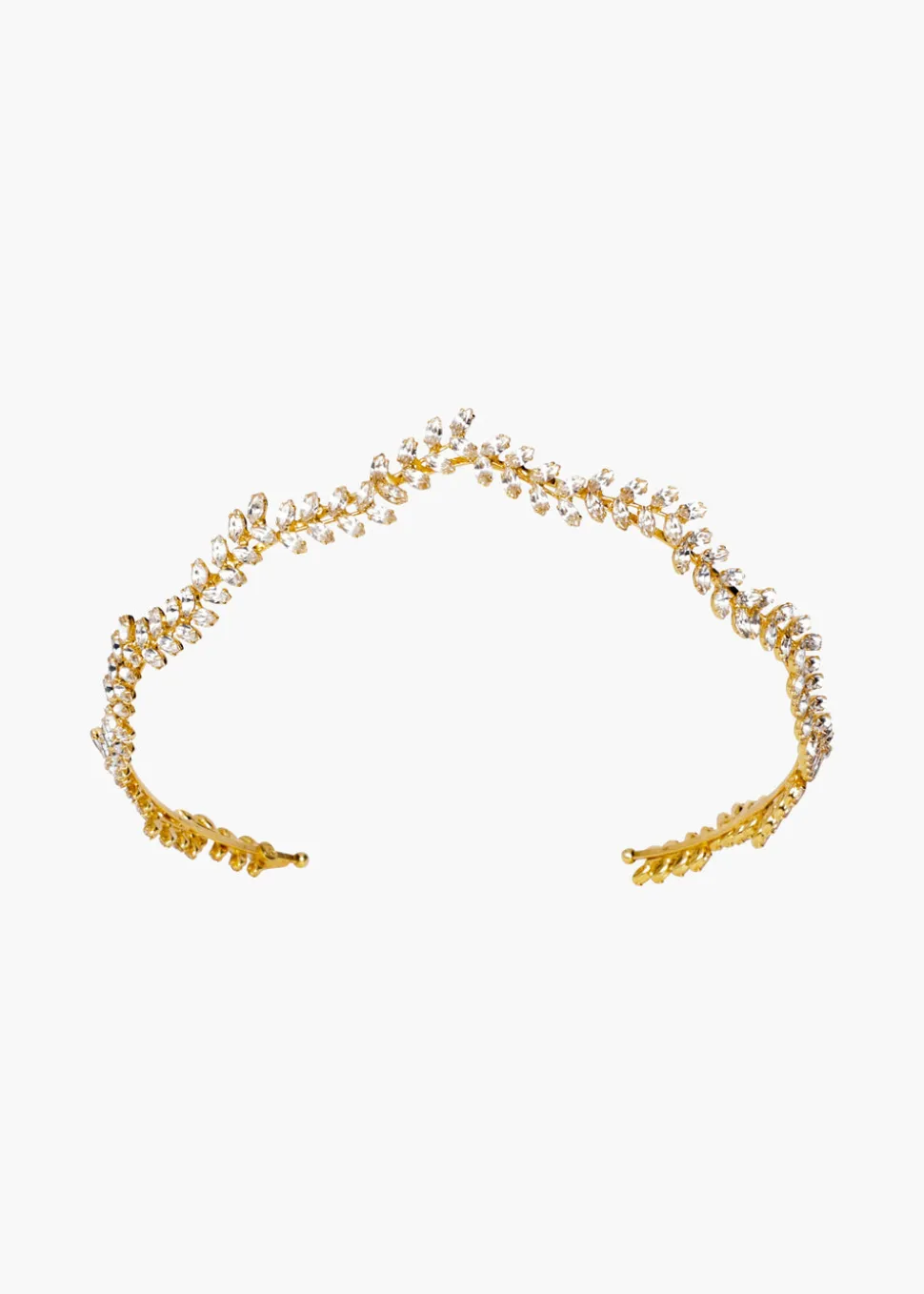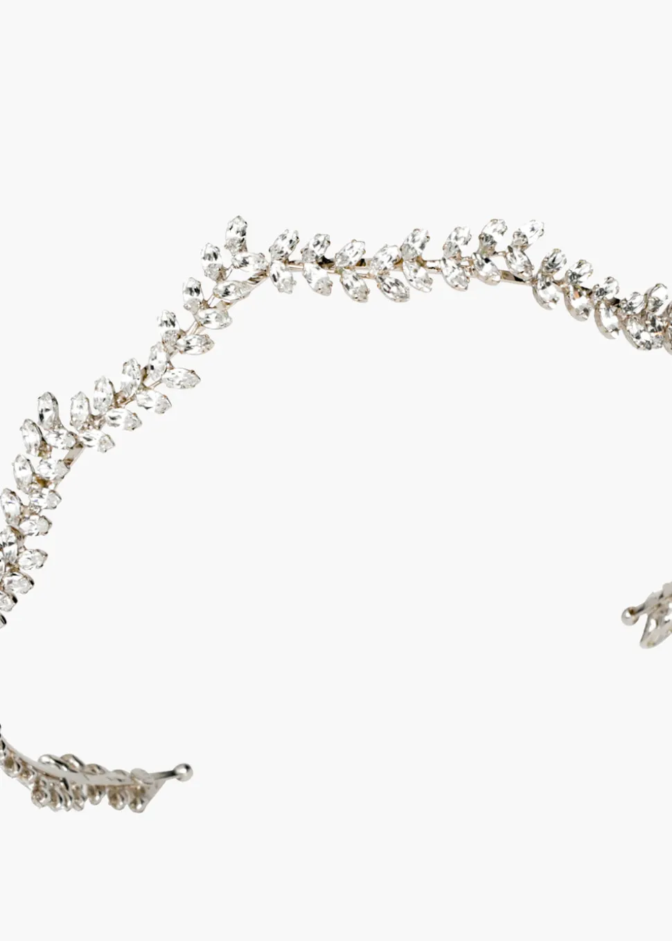 Swarovski crystal embellishment on a thin and flexible steel headband, which is custom designed to disappear in the hair and ensure hours of comfort.