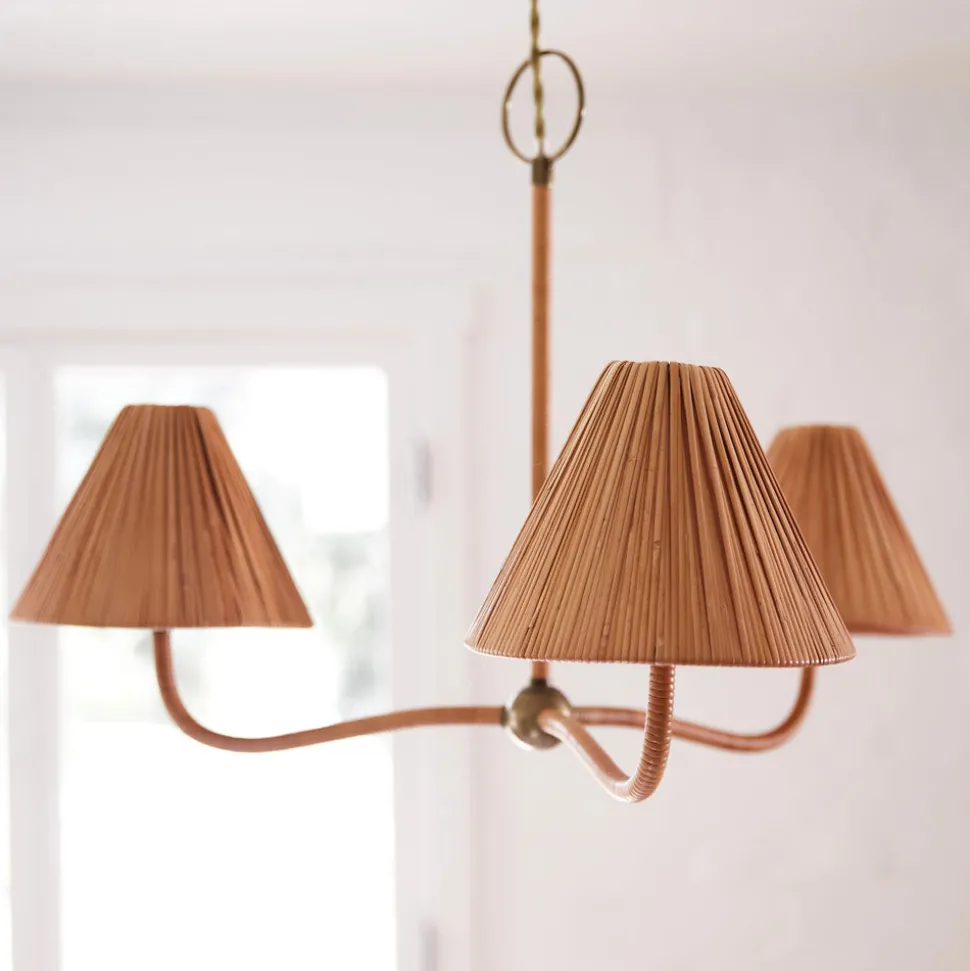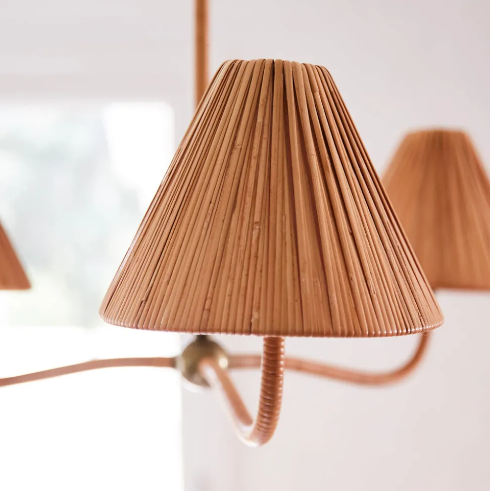 At once beautiful and timeless, Woven designs mindfully designed pieces for your home and beyond. Woven invites you to create spaces that are layered and natural—an expression of you. Inspired by the French affinity for our favorite material rattan, the Delphine Chandelier softly illuminates your dining space, entryway, or bedroom with approachable elegance. Rattan is expertly wrapped around a slender, sculptural frame, complemented by richly textured handcrafted rattan shades, while brass accents and a vintage-inspired wrapped cord add a chic and timeless touch.