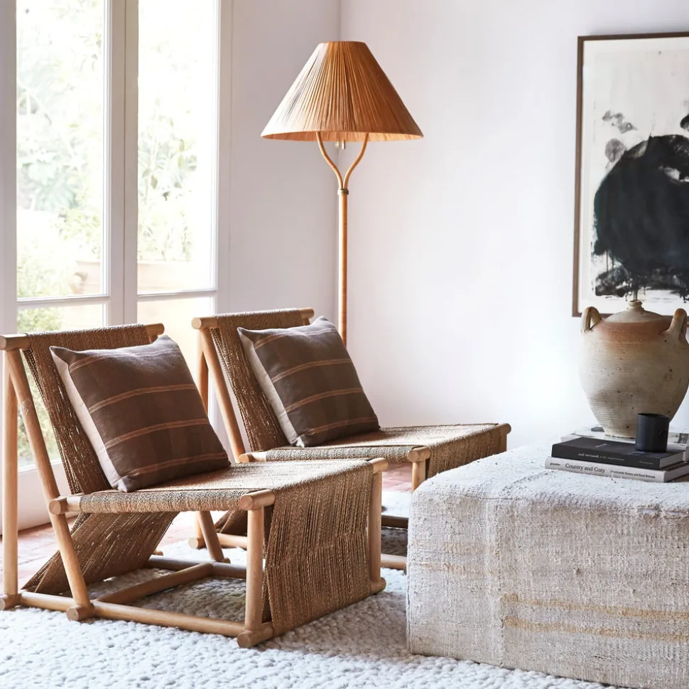 At once beautiful and timeless, Woven designs mindfully designed pieces for your home and beyond. Woven invites you to create spaces that are layered and natural—an expression of you. Inspired by a quintessentially Parisian apartment on the Left Bank, the Delphine Floor Lamp is versatile enough for almost anywhere in your home with its finely balanced proportions and clean, feminine lines. Rattan is expertly wrapped around its slender frame, complemented with a richly textural handcrafted rattan shade, brass accents, and a vintage-inspired wrapped cord that perfectly suits living spaces, bedrooms, and cozy nooks of all kinds.