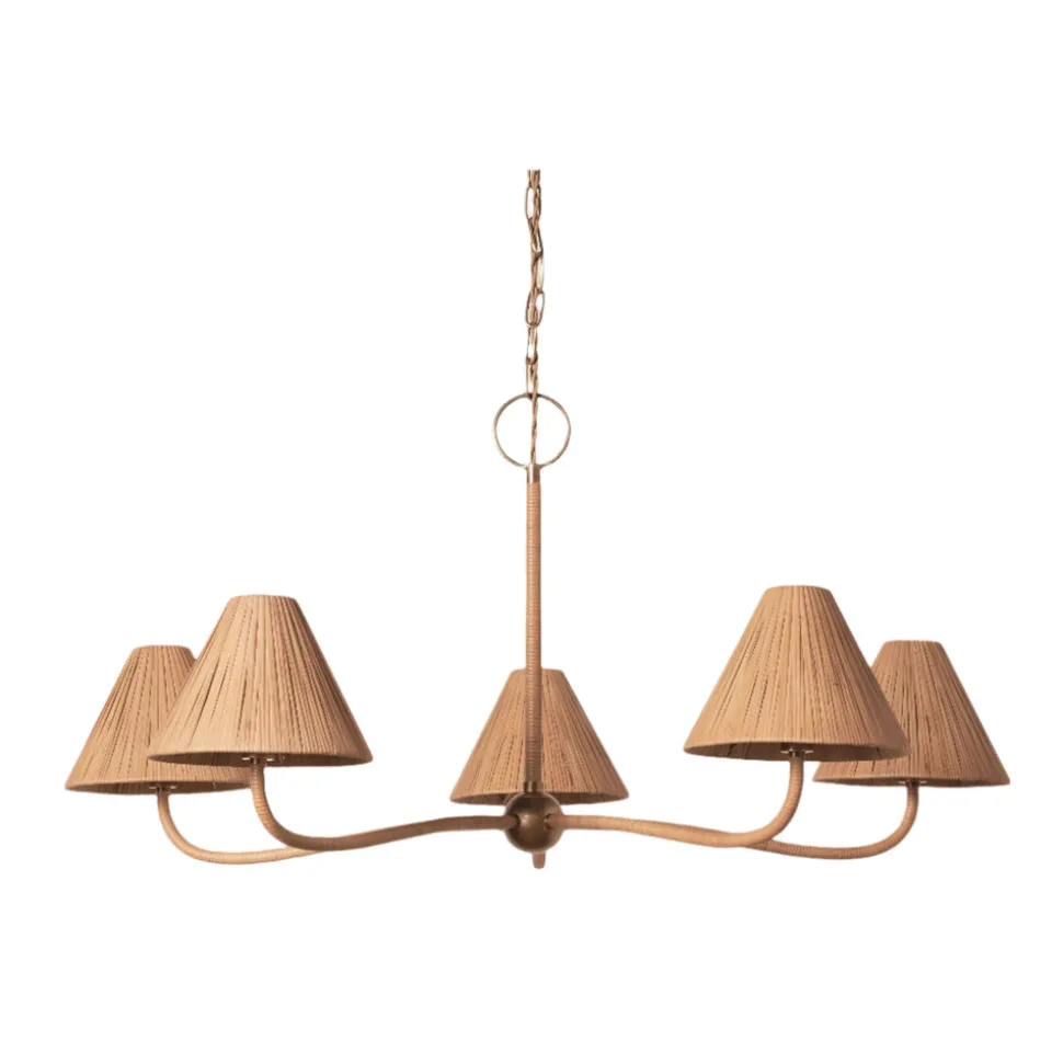 At once beautiful and timeless, Woven designs mindfully designed pieces for your home and beyond. Woven invites you to create spaces that are layered and natural—an expression of you. The Delphine Large Chandelier is inspired by the French affinity for our favorite material, rattan. Now available in a larger size, this statement piece softly illuminates your dining space, entryway, or bedroom with approachable elegance. Expertly wrapped rattan is complemented by richly textured, handcrafted shades, while the vintage-inspired wrapped cord and brass accents add a chic and timeless touch.