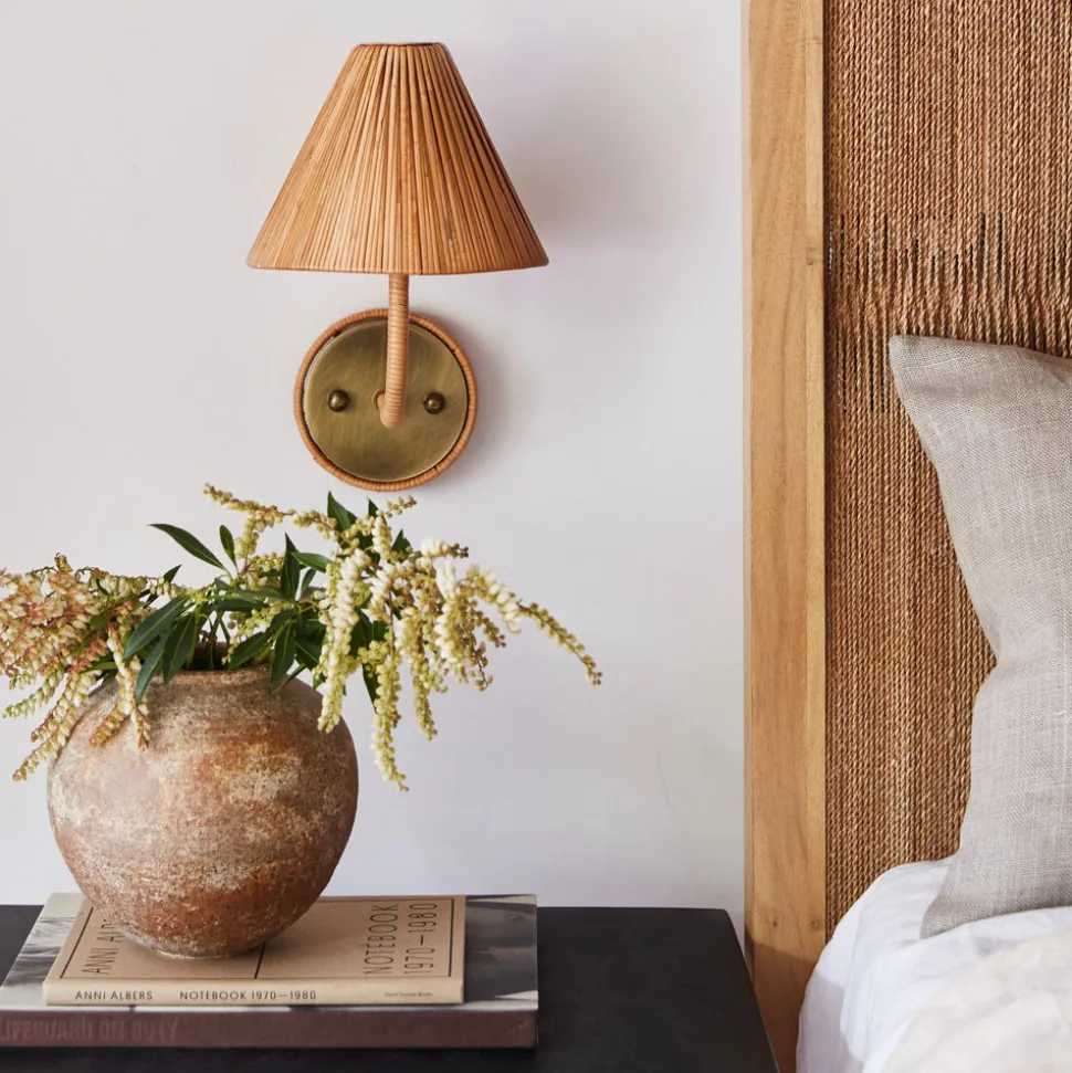 At once beautiful and timeless, Woven designs mindfully designed pieces for your home and beyond. Woven invites you to create spaces that are layered and natural—an expression of you. Made for those quiet bedside moments between you and a good book, the Delphine Sconce adds a touch of elegant simplicity to your space. Rattan is expertly wrapped around a delicate frame, complemented by the rich textural contrast of a handcrafted rattan shade and warm brass detailing. Beautiful beyond the bedside, Delphine also adds a high-texture touch of glow to hallways and bathrooms.